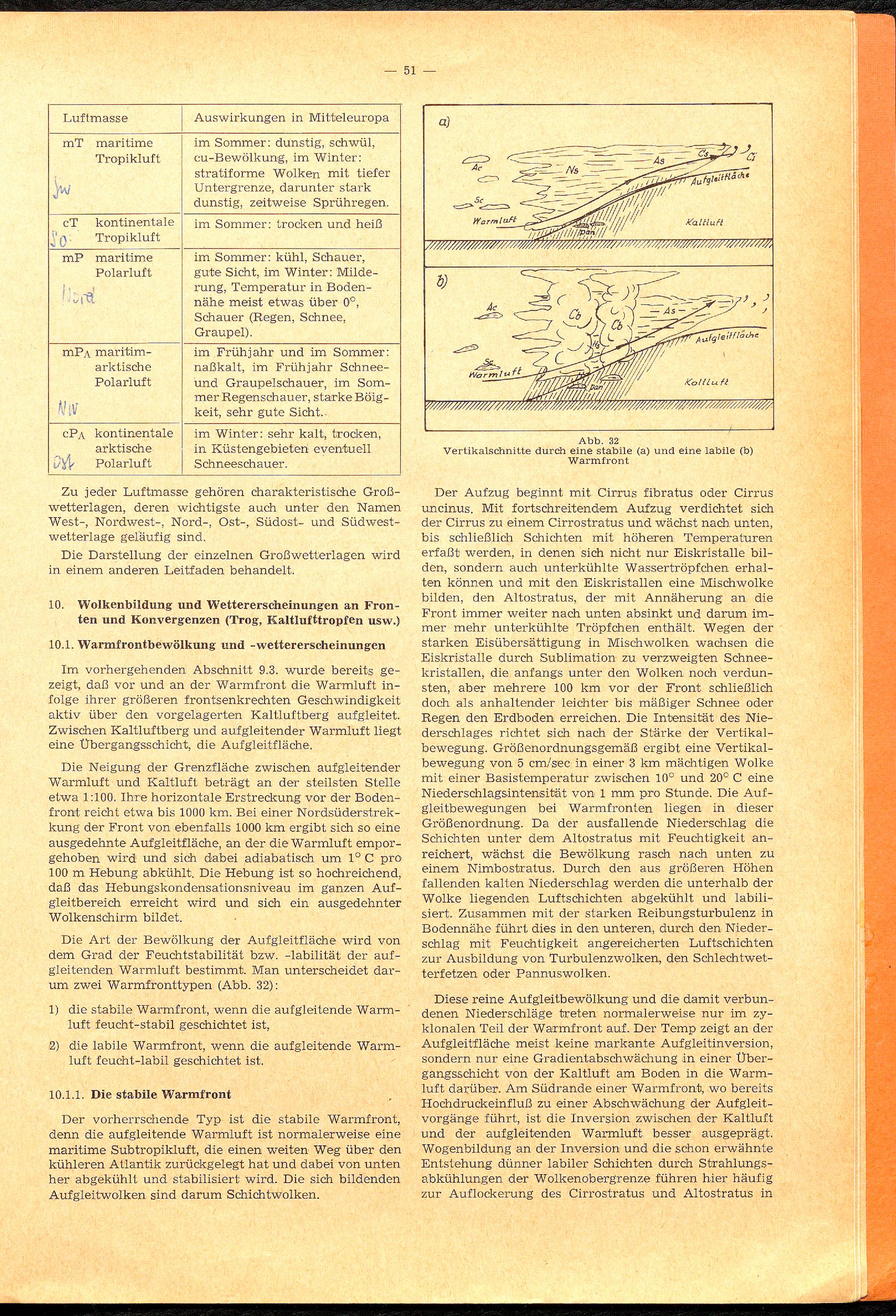 10. Wolkenbildung und Wettererscheinungen an Fronten und Konvergenzen (Trog, Kaltlufttropfen usw.)