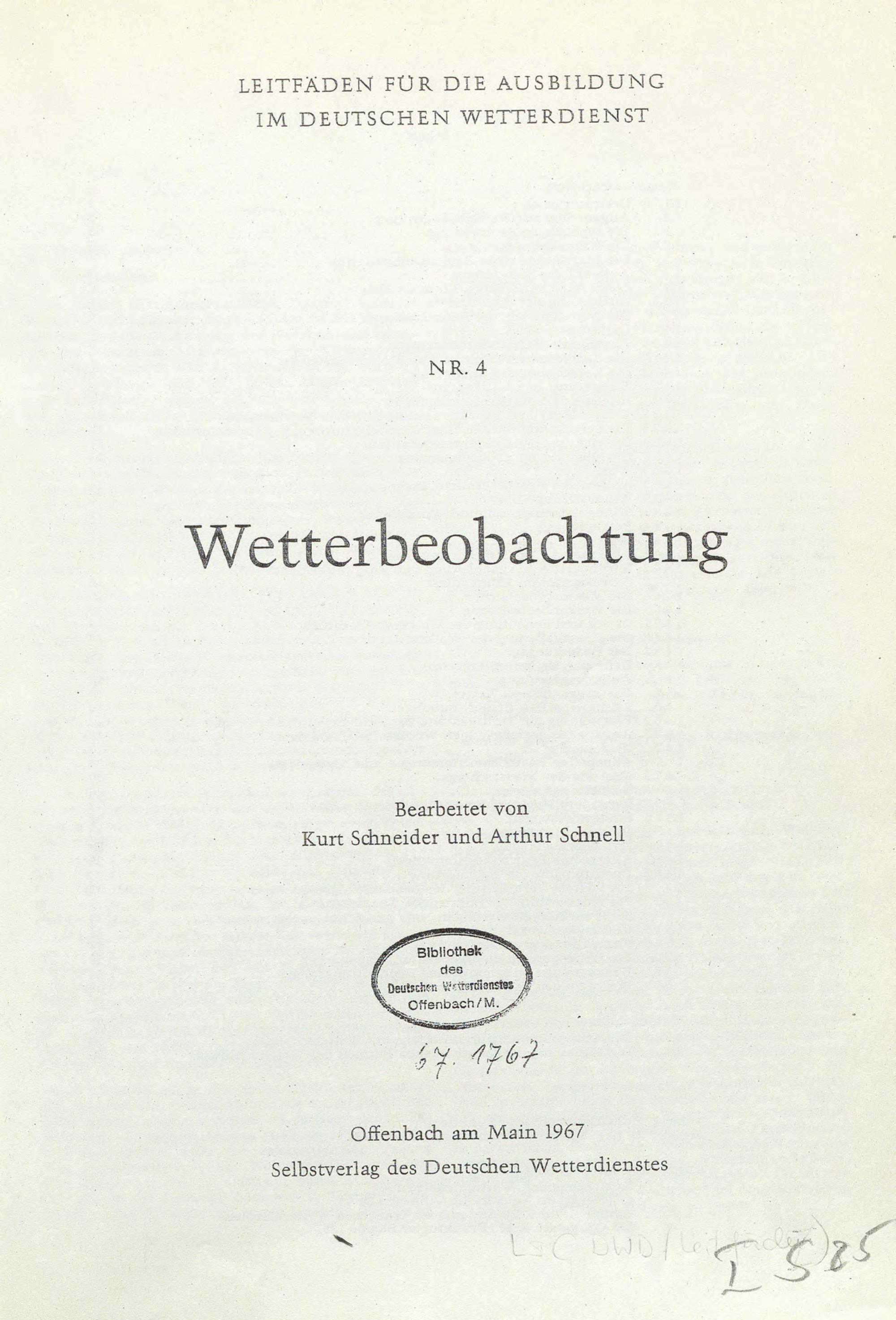 Wetterbeobachtung / Kurt Schneider ; ...