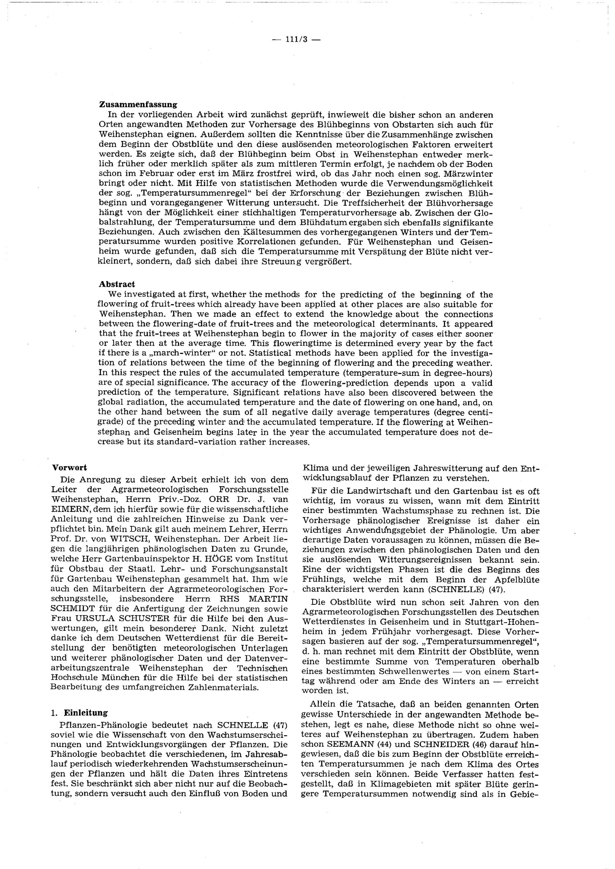 Untersuchungen zur Abhängigkeit des Beginns der Obstblüte von der Witterung