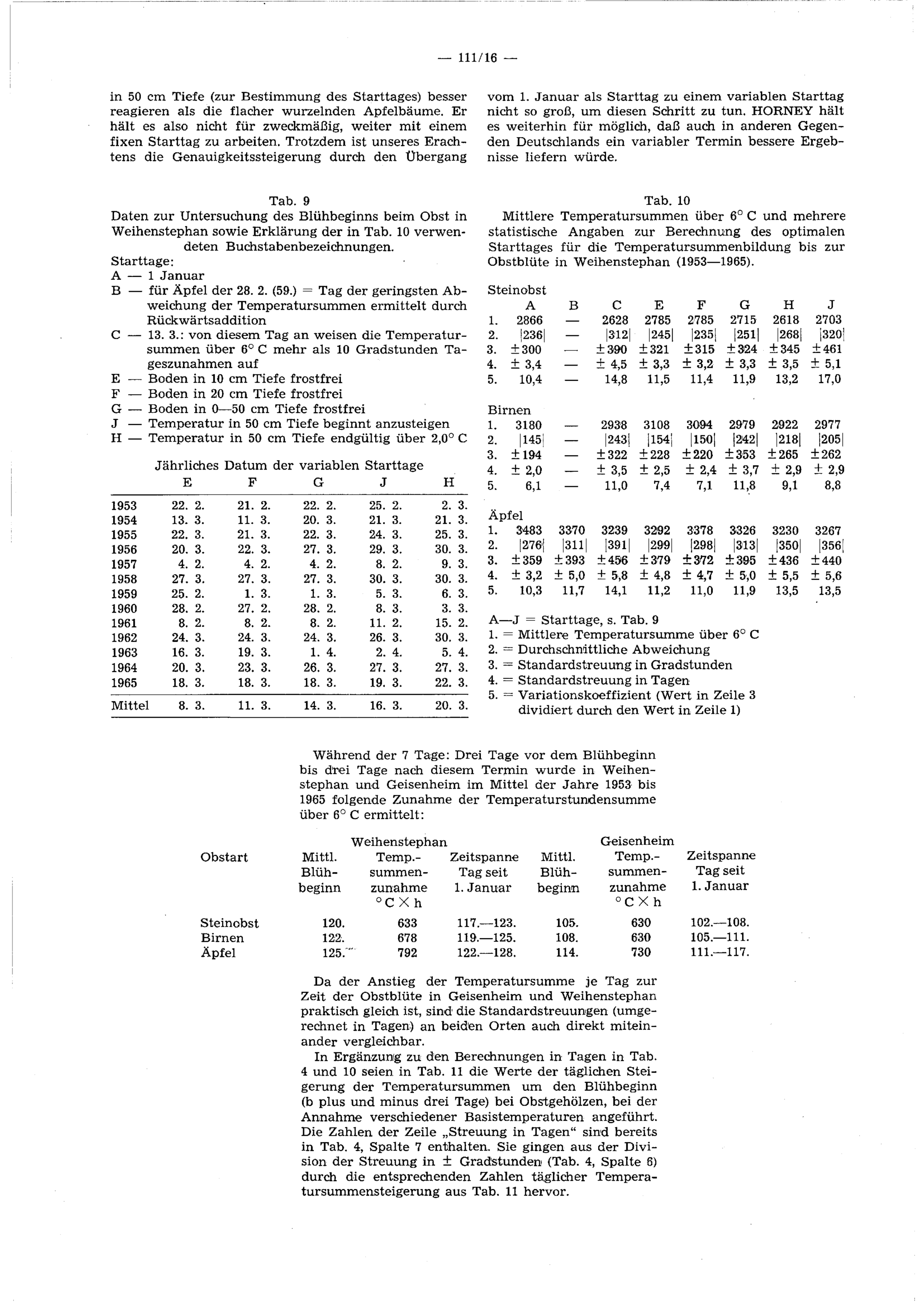 8. Die Streuung der Temperatursumme in Abhängigkeit vom Termin des Blühbeginns