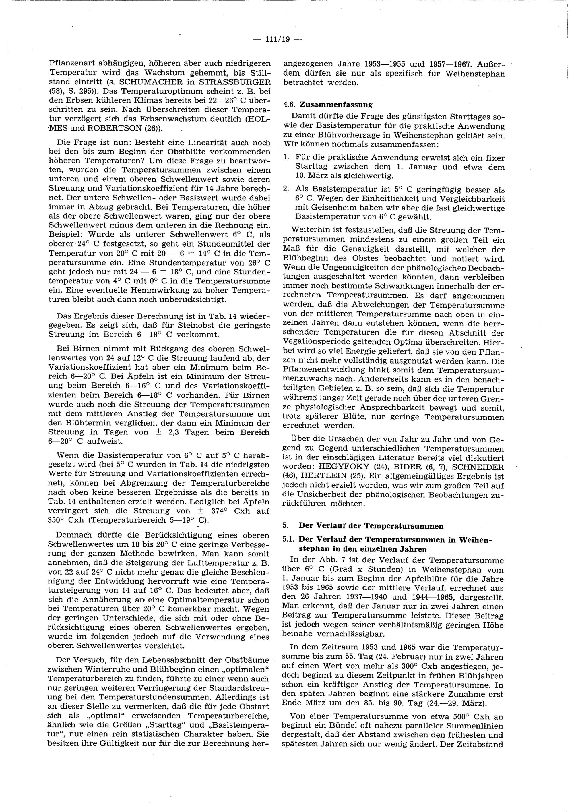 4. Betrachtungen über die Anwendung der "Temperatursummenregel" bei der Vorhersage von phänologischen Phaseneintrittszeiten