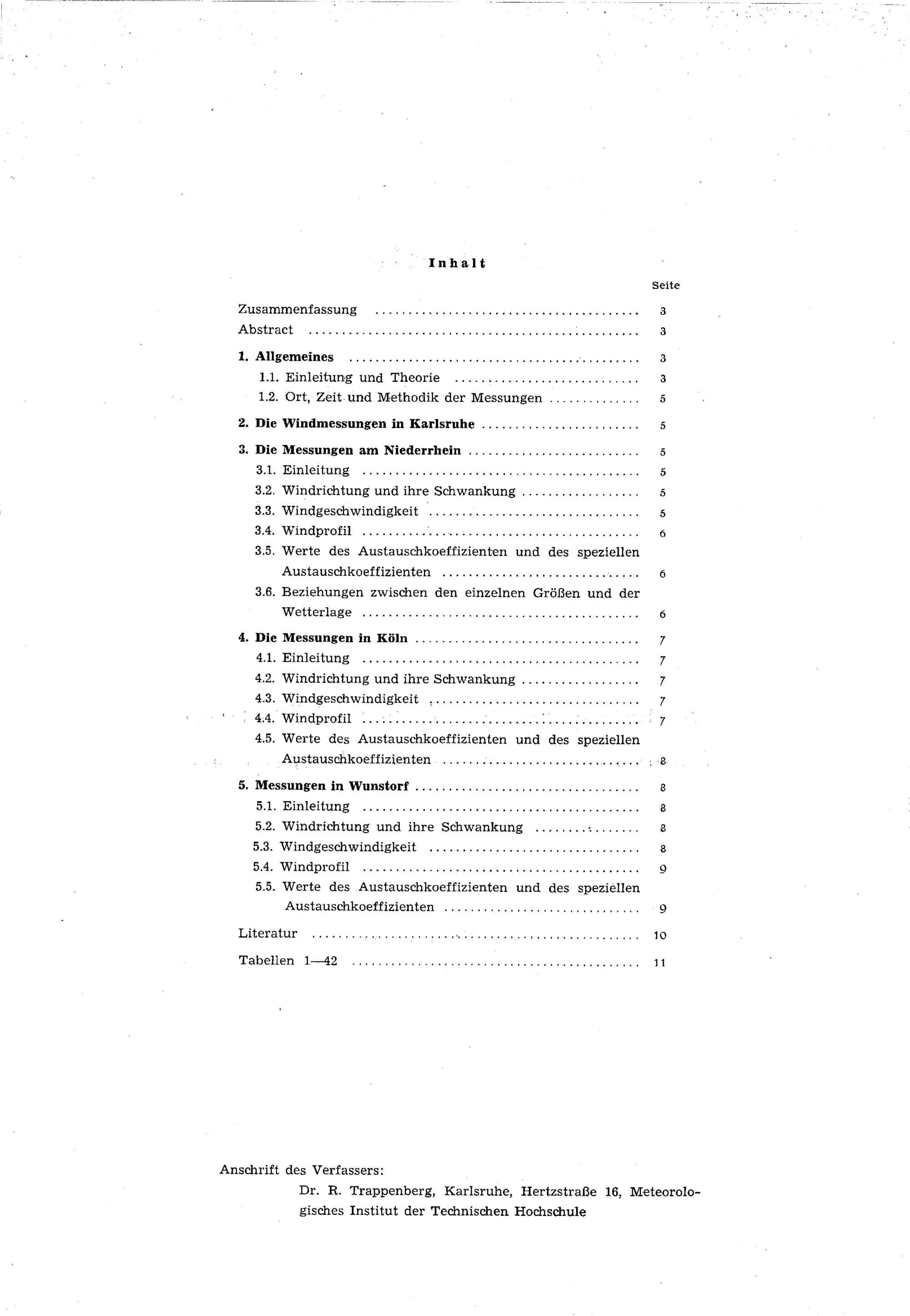 Ein Beitrag zu den Windverhältnissen in den ersten 100 m der Atmosphäre : (mit 42 Tabellen) / von Rüdiger Trappenberg