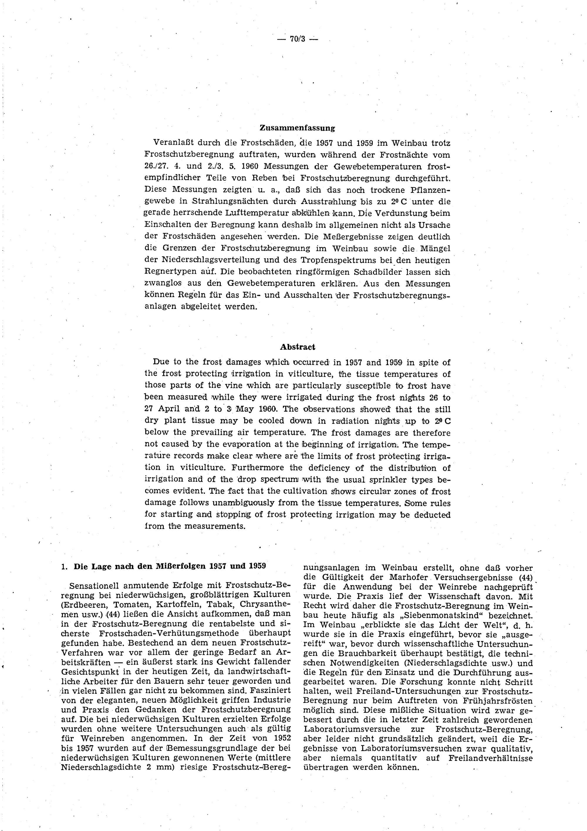Gewebetemperaturen frostempfindlicher Teile von Weinreben vor der Blattentfaltung bei der Frostschutzberegnung : (mit 7 Tabellen im Text) / von Maximilian Schneider