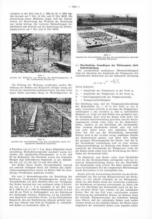 1. Versuche zur Beeinflussung des Mikroklimas im Boden und in der bodennahen Luftschicht durch Bodenbedeckung