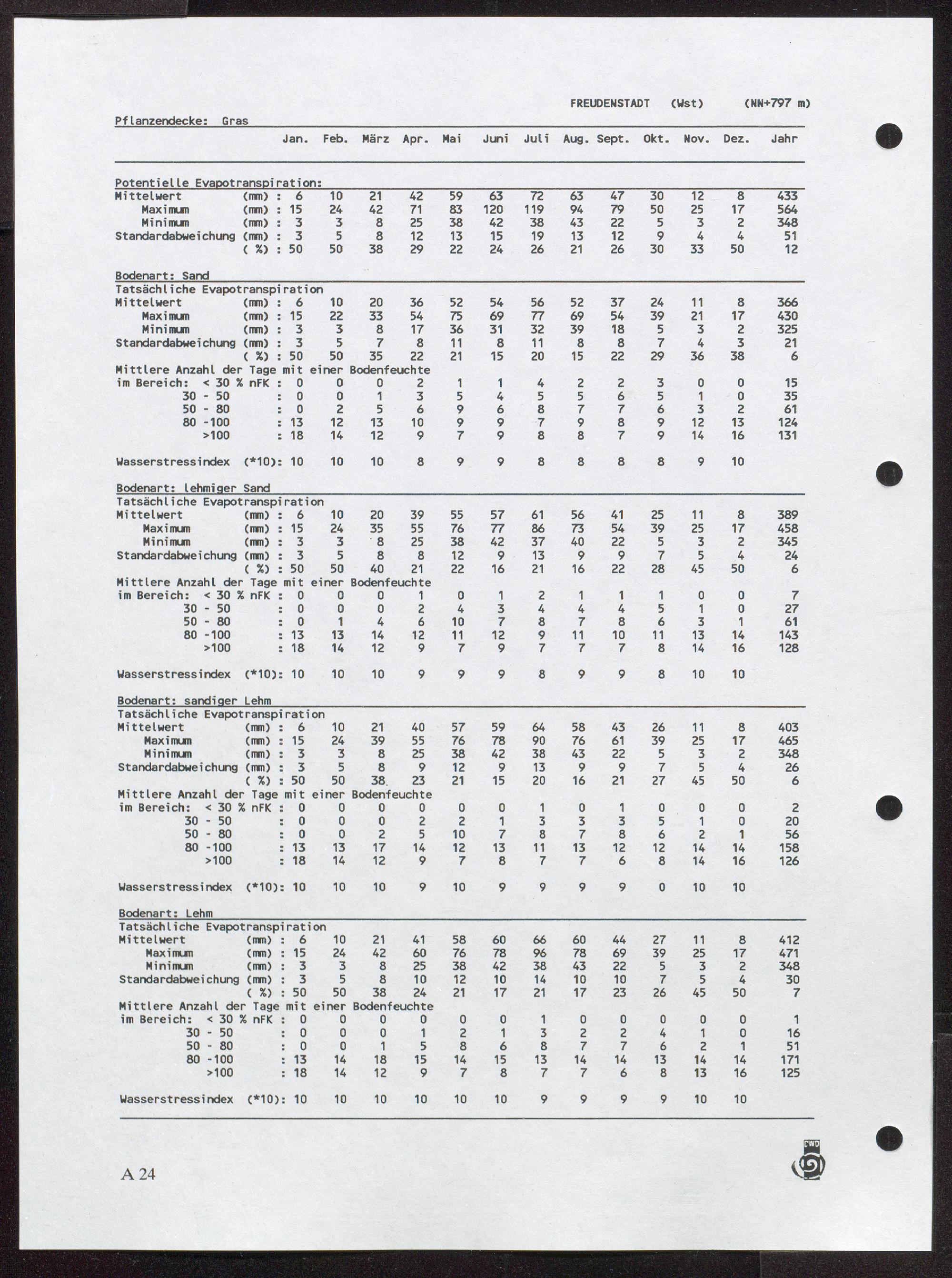 1 (1995) Potentielle und tatsächliche Evapotranspiration, Bodenfeuchte und Wasserstreßindex : Band 1: Gras / von Helmuth Dommermuth und Walter Trampf / von Helmuth Dommermuth und Walter Tramp ; Herausgeber und Verlag: Deutscher Wetterdienst