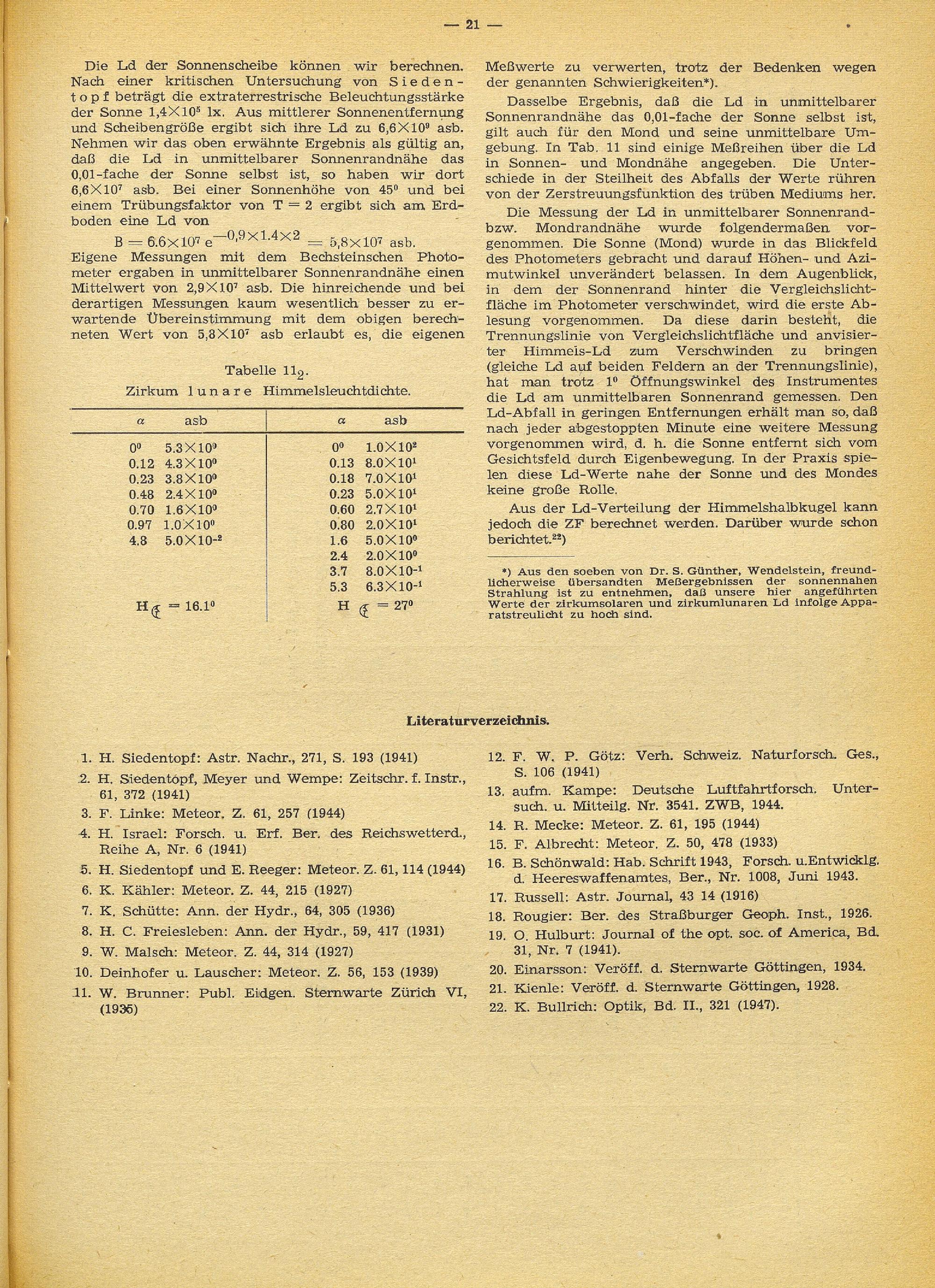 Die Leuchtdichte des Himmels und die Globalbeleuchtungsstärke während der Dämmerung und in der Nacht / von Kurt Bullrich