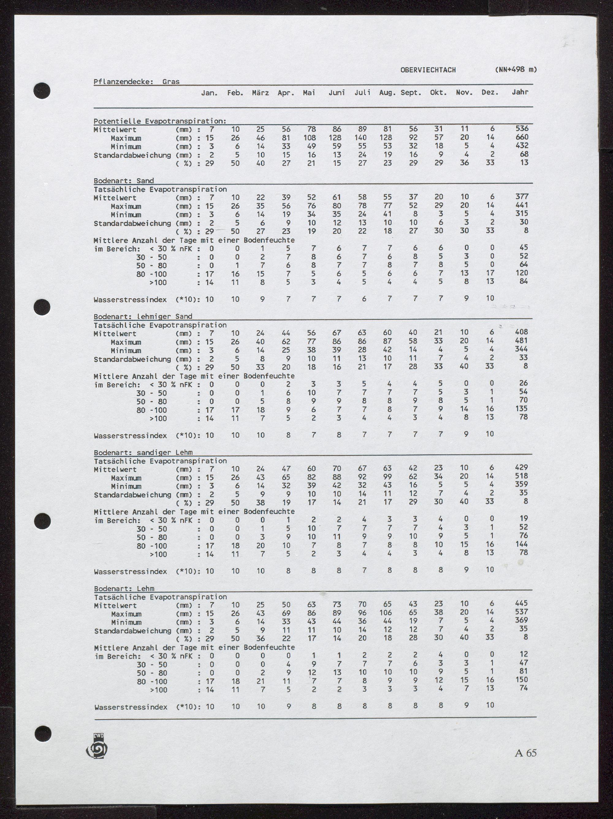 1 (1995) Potentielle und tatsächliche Evapotranspiration, Bodenfeuchte und Wasserstreßindex : Band 1: Gras / von Helmuth Dommermuth und Walter Trampf / von Helmuth Dommermuth und Walter Tramp ; Herausgeber und Verlag: Deutscher Wetterdienst