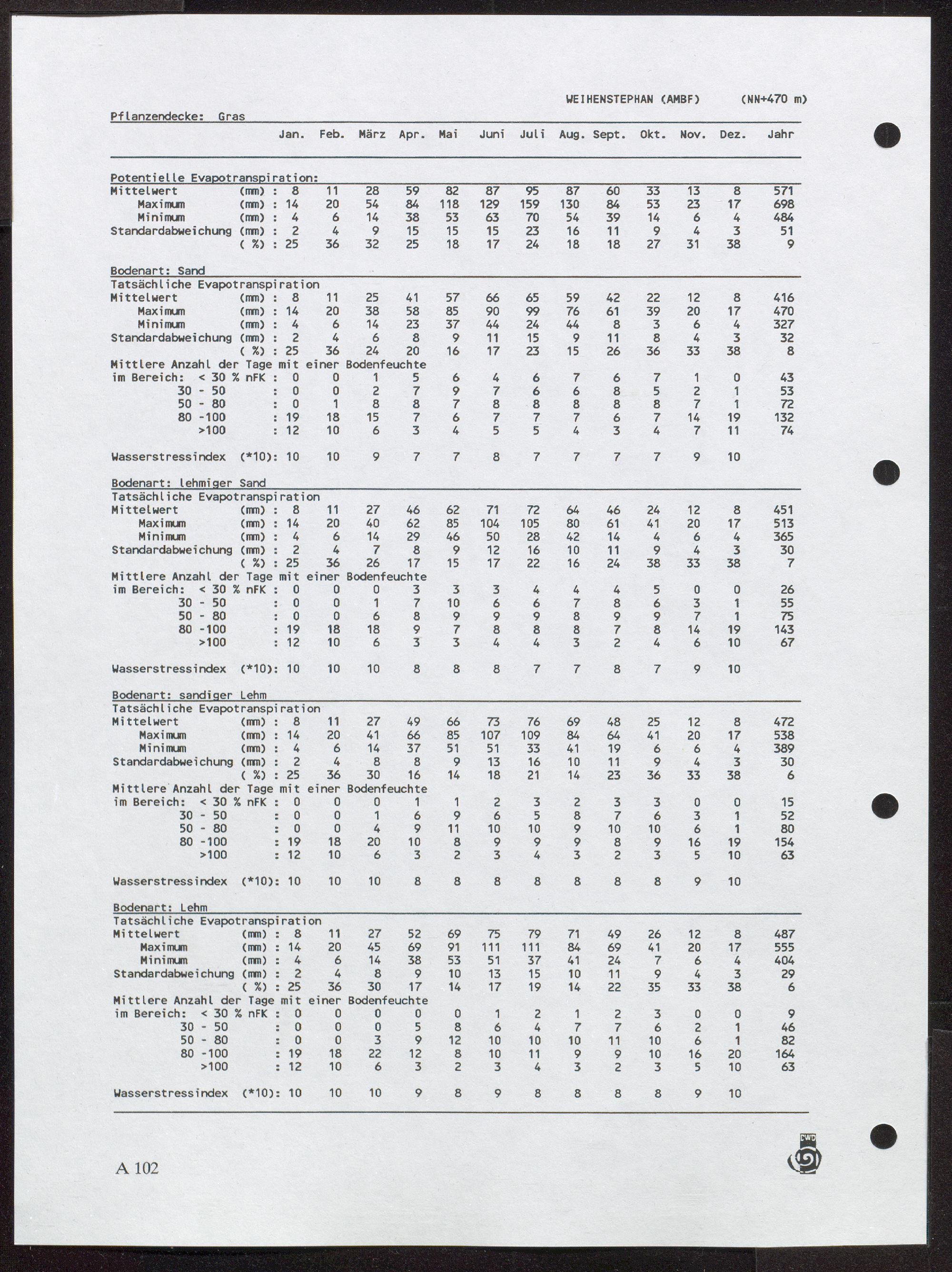 1 (1995) Potentielle und tatsächliche Evapotranspiration, Bodenfeuchte und Wasserstreßindex : Band 1: Gras / von Helmuth Dommermuth und Walter Trampf / von Helmuth Dommermuth und Walter Tramp ; Herausgeber und Verlag: Deutscher Wetterdienst