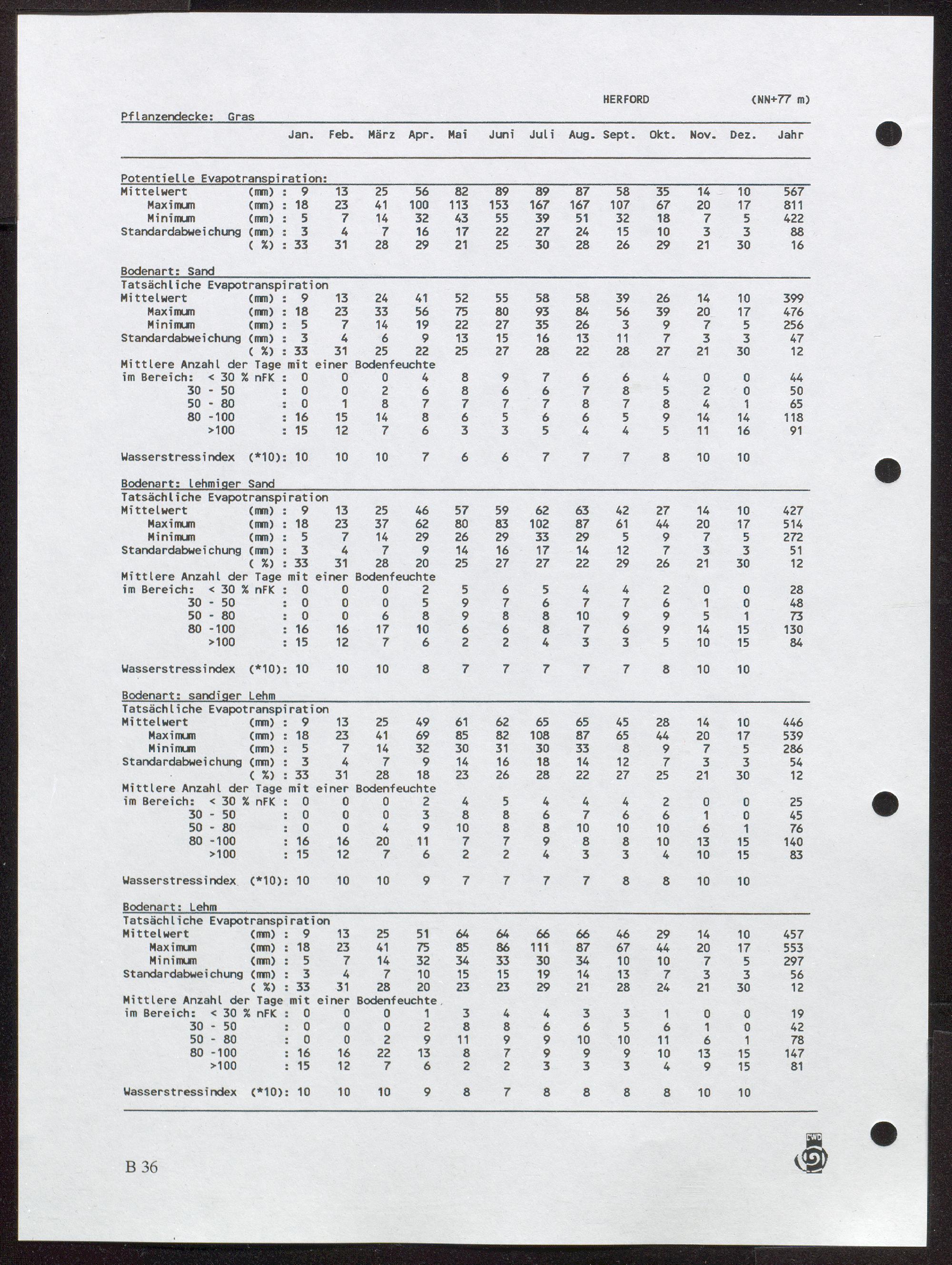 1 (1995) Potentielle und tatsächliche Evapotranspiration, Bodenfeuchte und Wasserstreßindex : Band 1: Gras / von Helmuth Dommermuth und Walter Trampf / von Helmuth Dommermuth und Walter Tramp ; Herausgeber und Verlag: Deutscher Wetterdienst