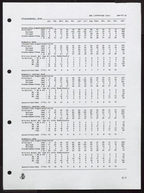 1 (1995) Potentielle und tatsächliche Evapotranspiration, Bodenfeuchte und Wasserstreßindex : Band 1: Gras / von Helmuth Dommermuth und Walter Trampf / von Helmuth Dommermuth und Walter Tramp ; Herausgeber und Verlag: Deutscher Wetterdienst