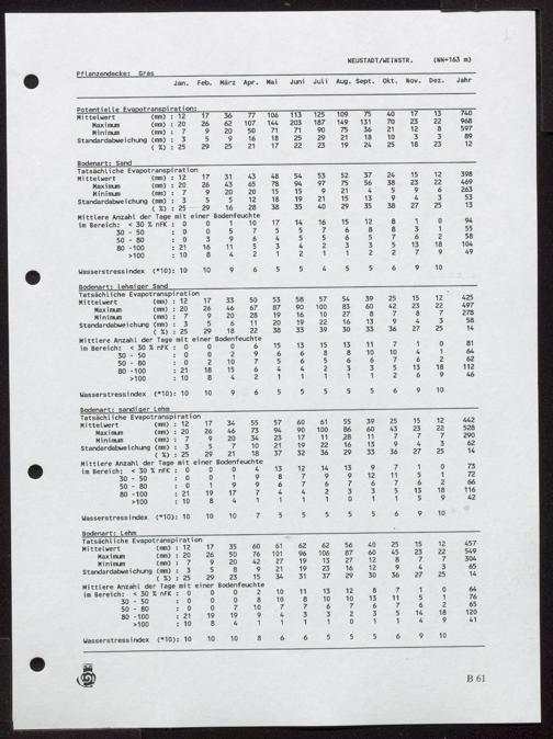 1 (1995) Potentielle und tatsächliche Evapotranspiration, Bodenfeuchte und Wasserstreßindex : Band 1: Gras / von Helmuth Dommermuth und Walter Trampf / von Helmuth Dommermuth und Walter Tramp ; Herausgeber und Verlag: Deutscher Wetterdienst