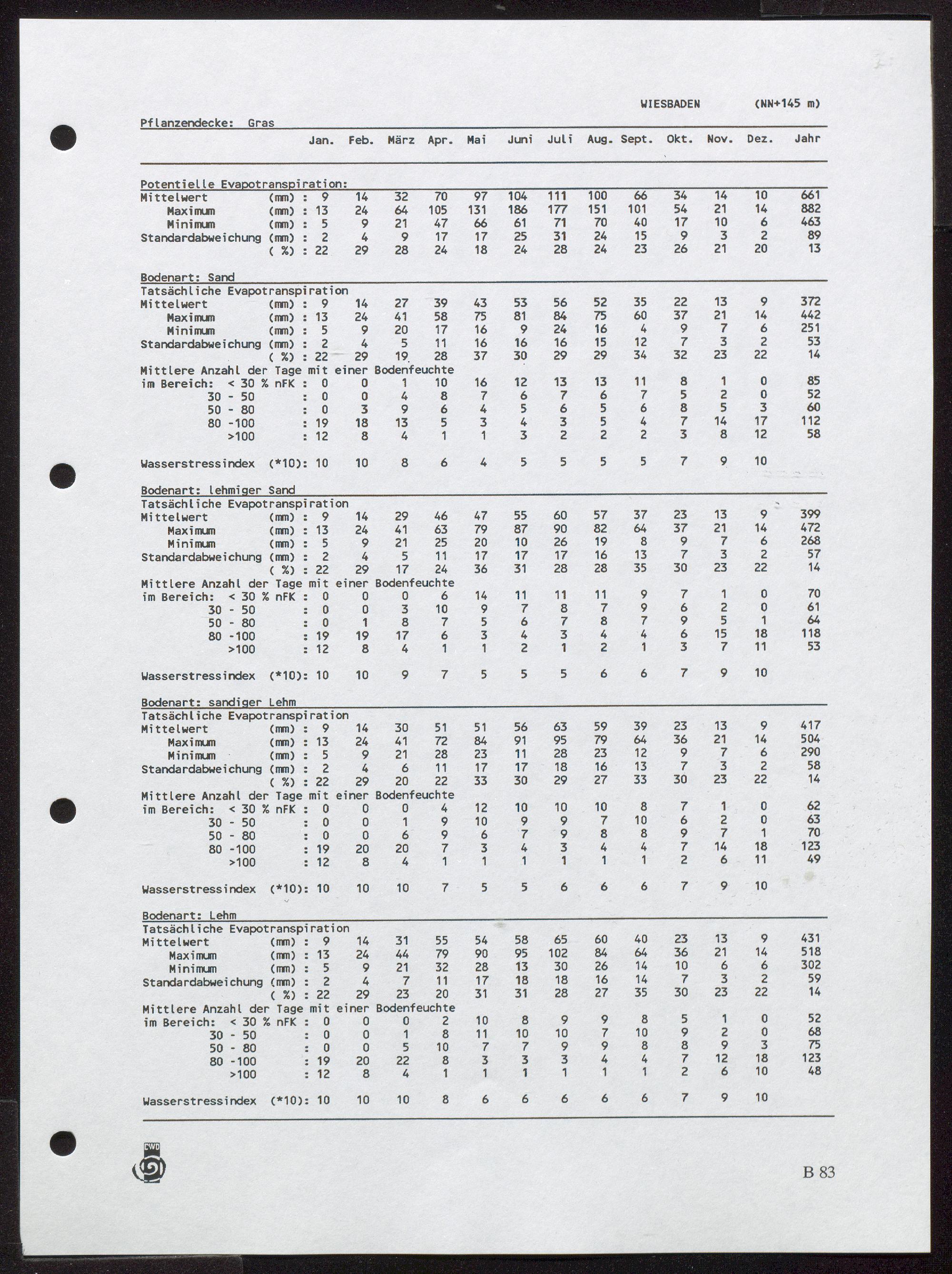 1 (1995) Potentielle und tatsächliche Evapotranspiration, Bodenfeuchte und Wasserstreßindex : Band 1: Gras / von Helmuth Dommermuth und Walter Trampf / von Helmuth Dommermuth und Walter Tramp ; Herausgeber und Verlag: Deutscher Wetterdienst