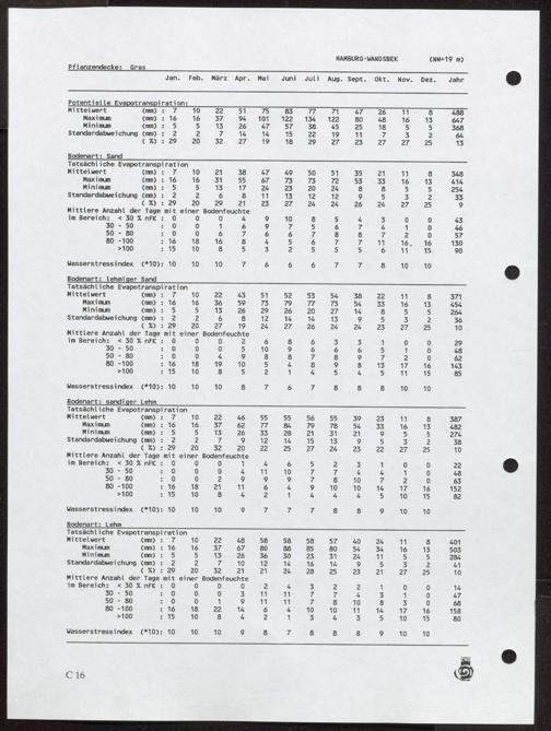 1 (1995) Potentielle und tatsächliche Evapotranspiration, Bodenfeuchte und Wasserstreßindex : Band 1: Gras / von Helmuth Dommermuth und Walter Trampf / von Helmuth Dommermuth und Walter Tramp ; Herausgeber und Verlag: Deutscher Wetterdienst