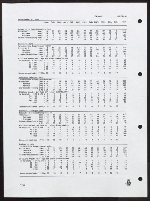 1 (1995) Potentielle und tatsächliche Evapotranspiration, Bodenfeuchte und Wasserstreßindex : Band 1: Gras / von Helmuth Dommermuth und Walter Trampf / von Helmuth Dommermuth und Walter Tramp ; Herausgeber und Verlag: Deutscher Wetterdienst