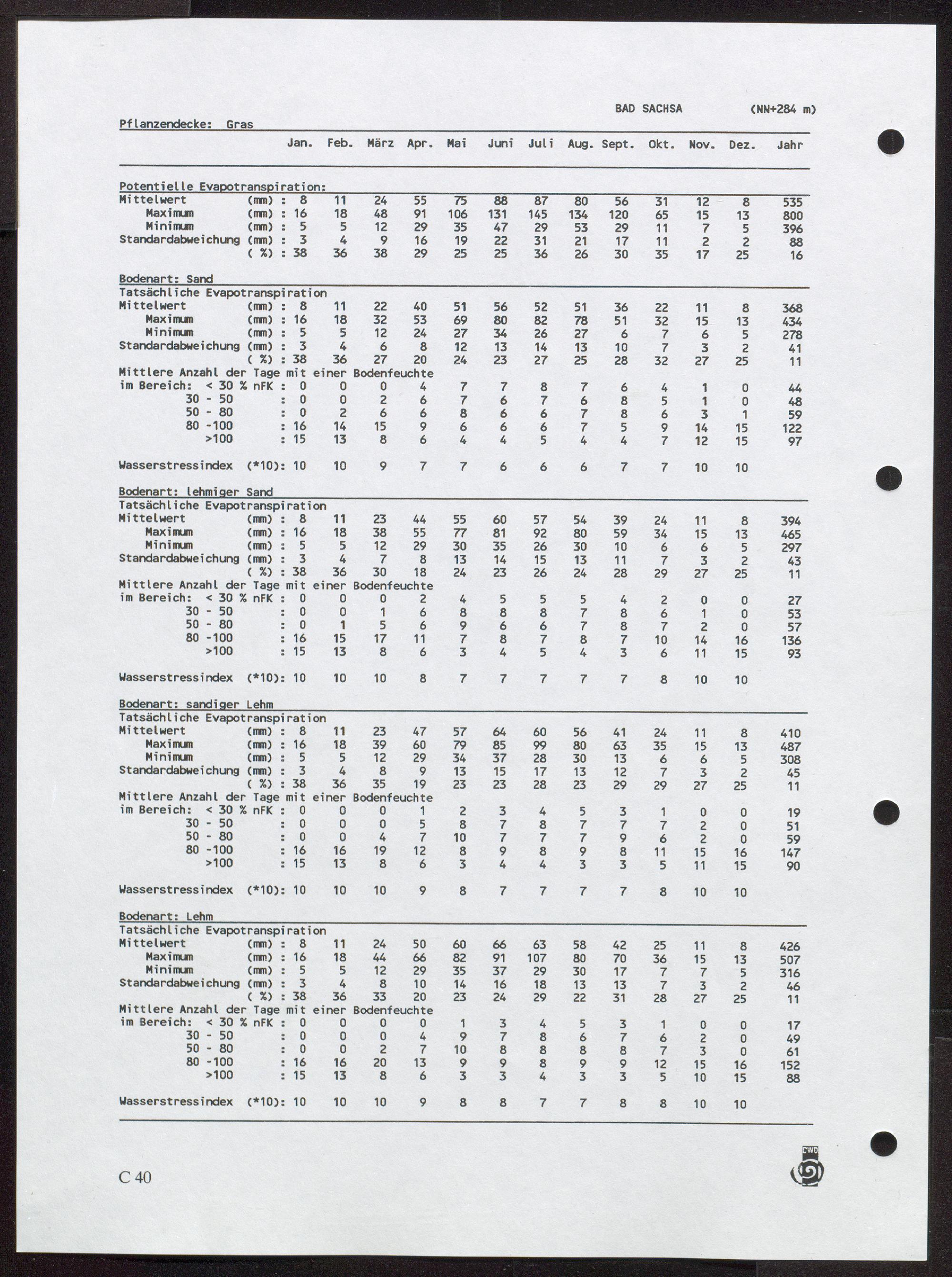 1 (1995) Potentielle und tatsächliche Evapotranspiration, Bodenfeuchte und Wasserstreßindex : Band 1: Gras / von Helmuth Dommermuth und Walter Trampf / von Helmuth Dommermuth und Walter Tramp ; Herausgeber und Verlag: Deutscher Wetterdienst