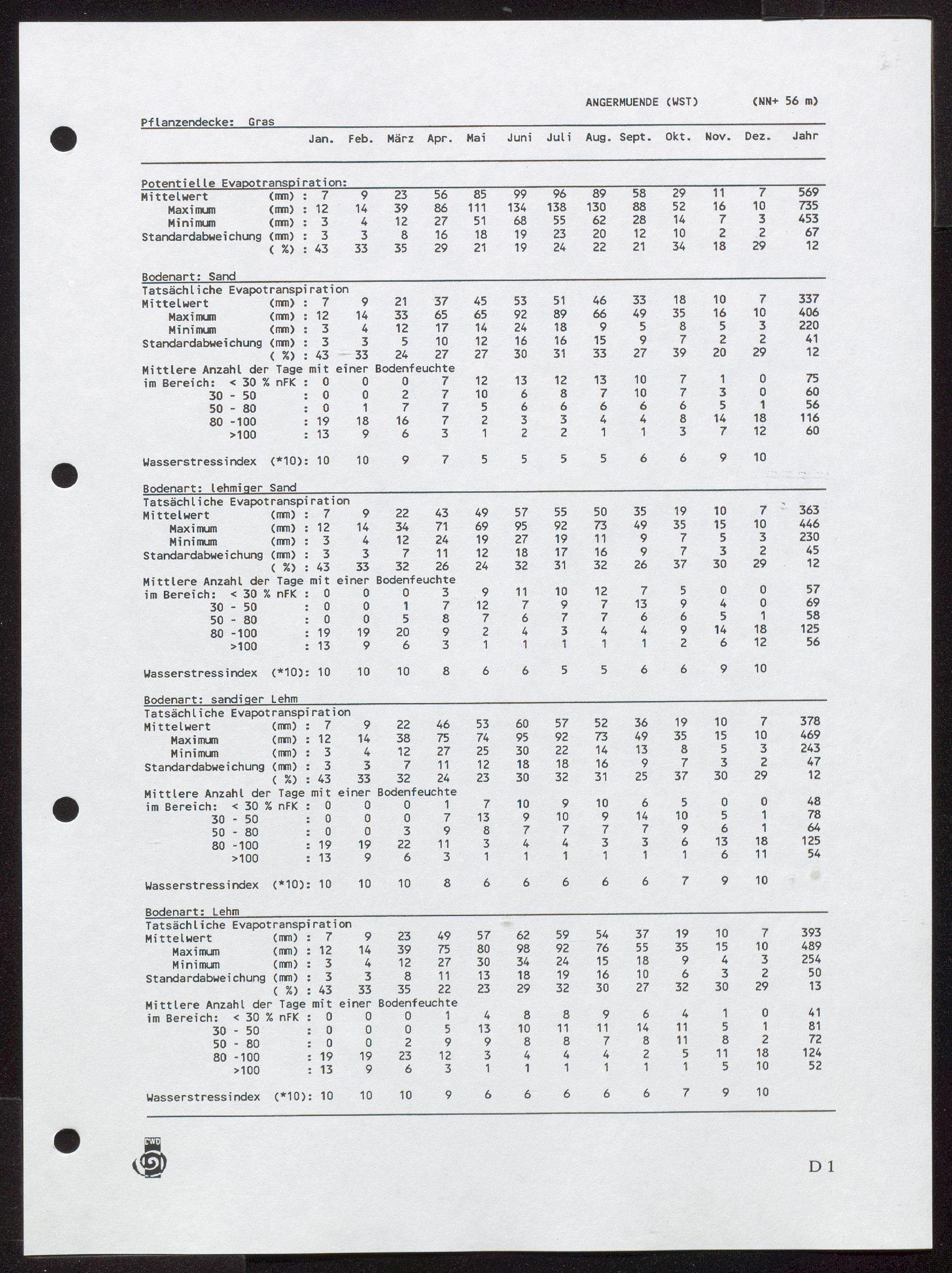 1 (1995) Potentielle und tatsächliche Evapotranspiration, Bodenfeuchte und Wasserstreßindex : Band 1: Gras / von Helmuth Dommermuth und Walter Trampf / von Helmuth Dommermuth und Walter Tramp ; Herausgeber und Verlag: Deutscher Wetterdienst