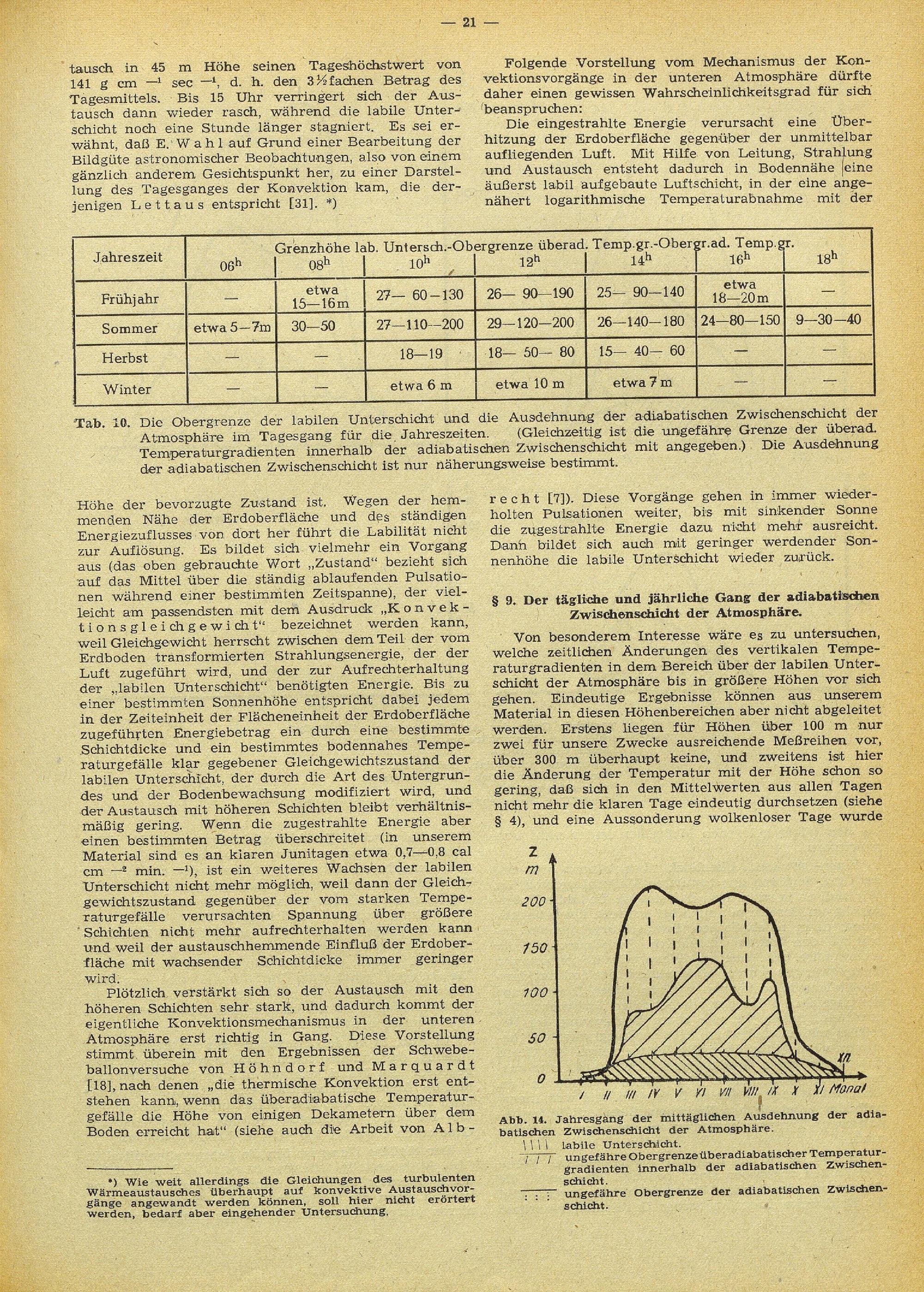 Über den täglichen und jährlichen Gang der Höhenabhängigkeit der Temperatur in den unteren 300 Metern der Atmosphäre und ihren Zusammenhang mit der Konvektion / von Karl Brocks