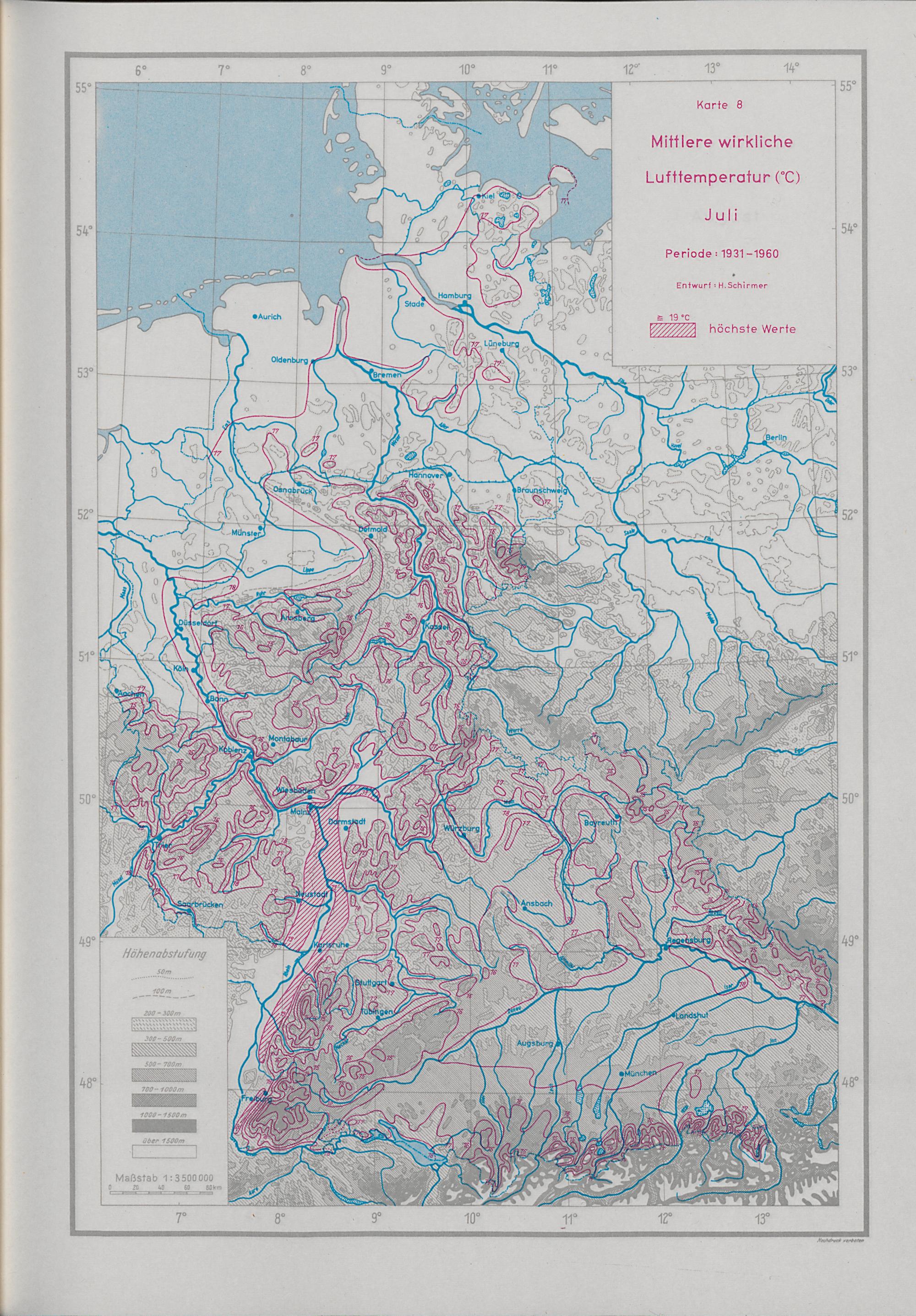 Langjährige Monats- und Jahresmittel der Lufttemperatur und des Niederschlags in der Bundesrepublik Deutschland für die Periode 1931 - 1960 :