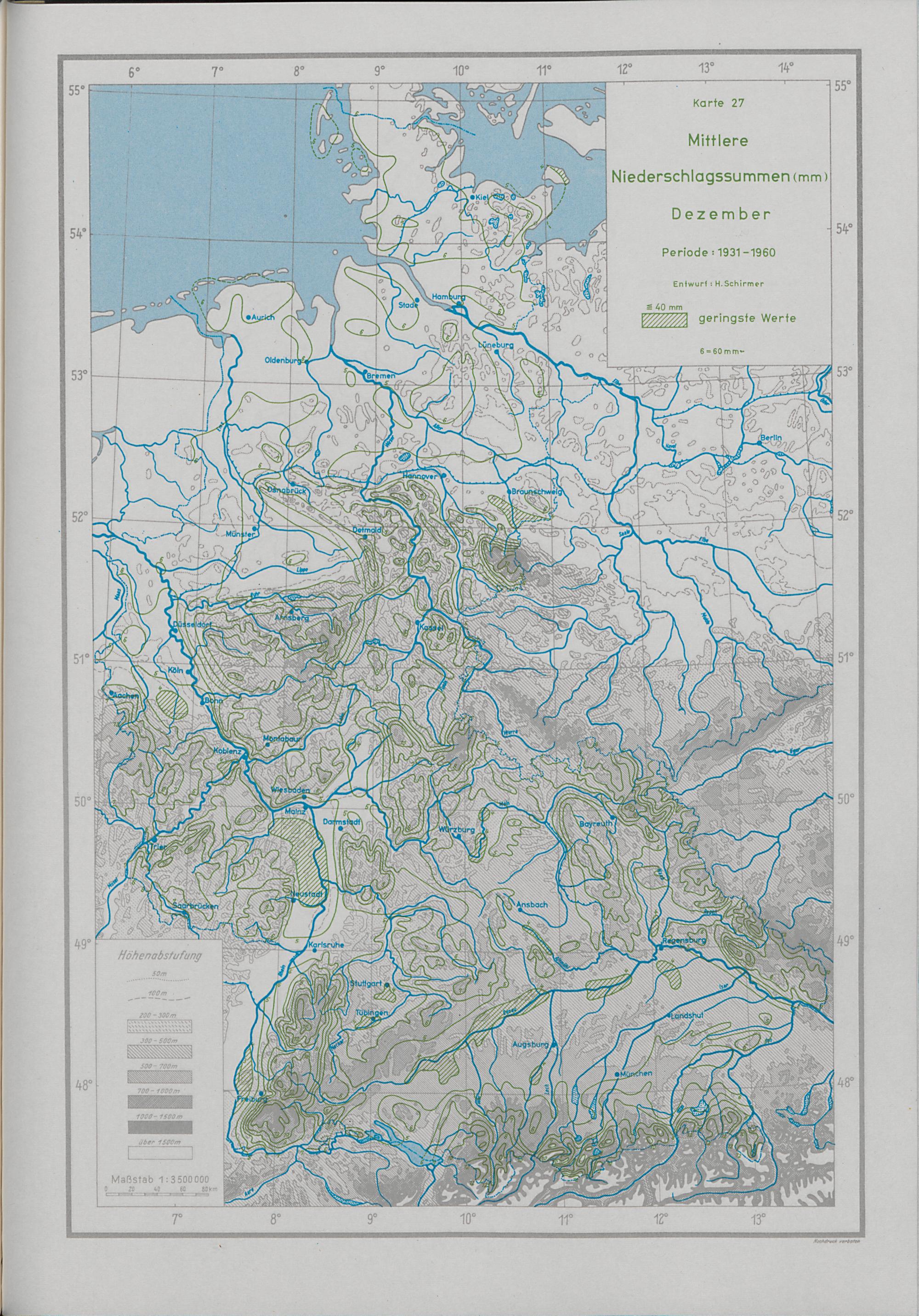 Langjährige Monats- und Jahresmittel der Lufttemperatur und des Niederschlags in der Bundesrepublik Deutschland für die Periode 1931 - 1960 :