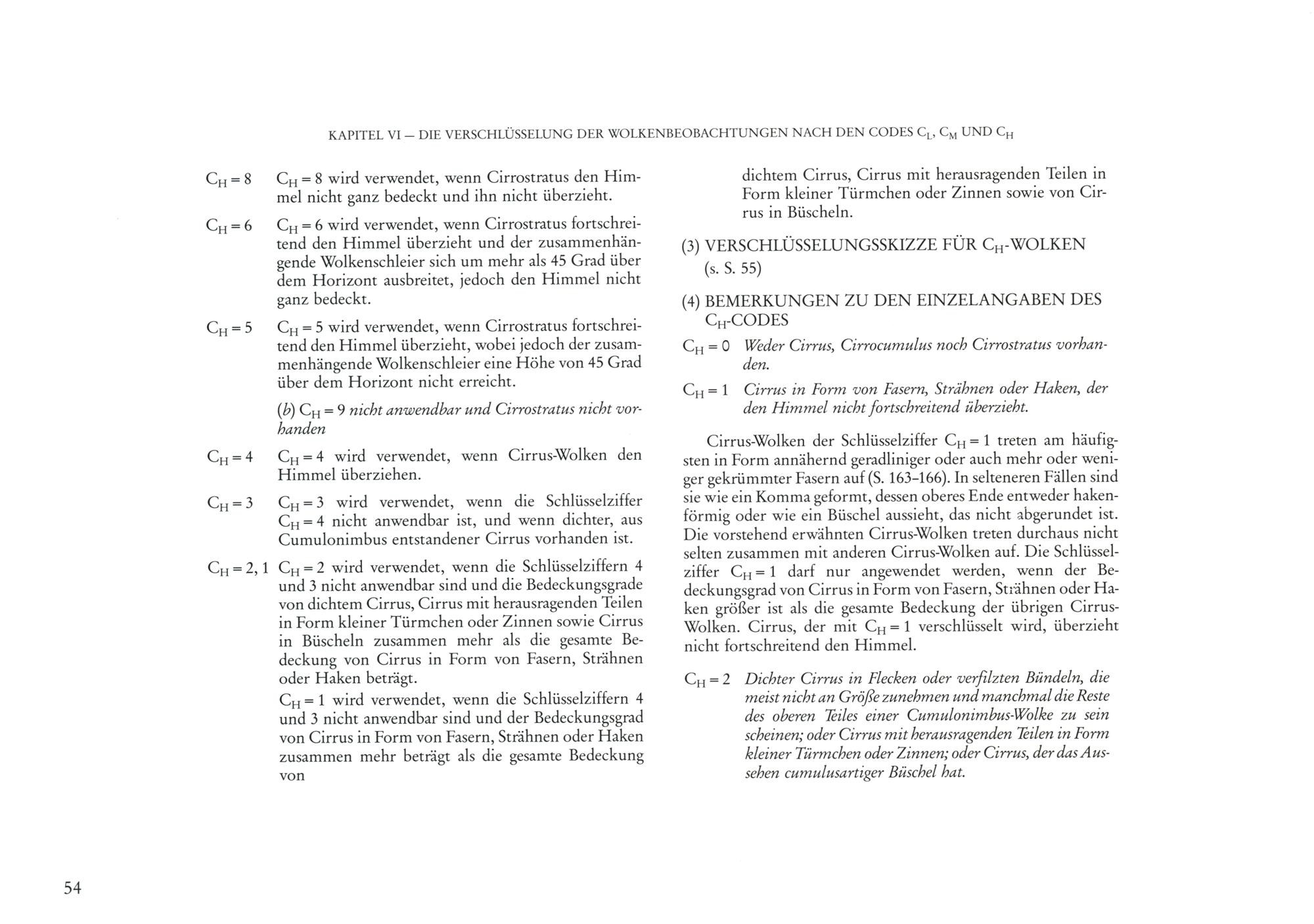 Kapitel VI: Die Verschlüssellung der Wolkenbeobachtungen nach den Codes CL, CM und...