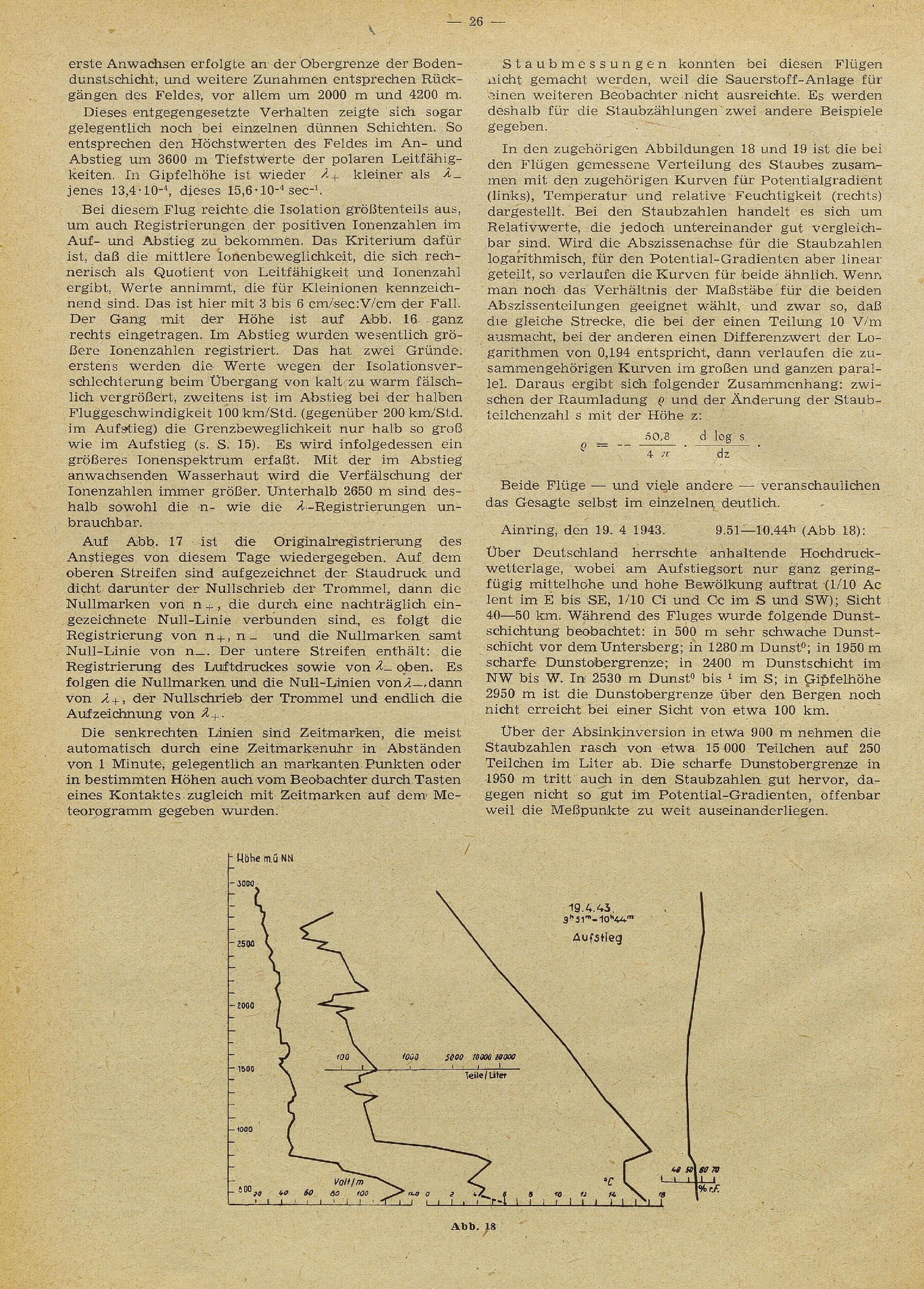 Luftelektrische Messungen mittels Segelflugzeugen / von Fritz Roßmann