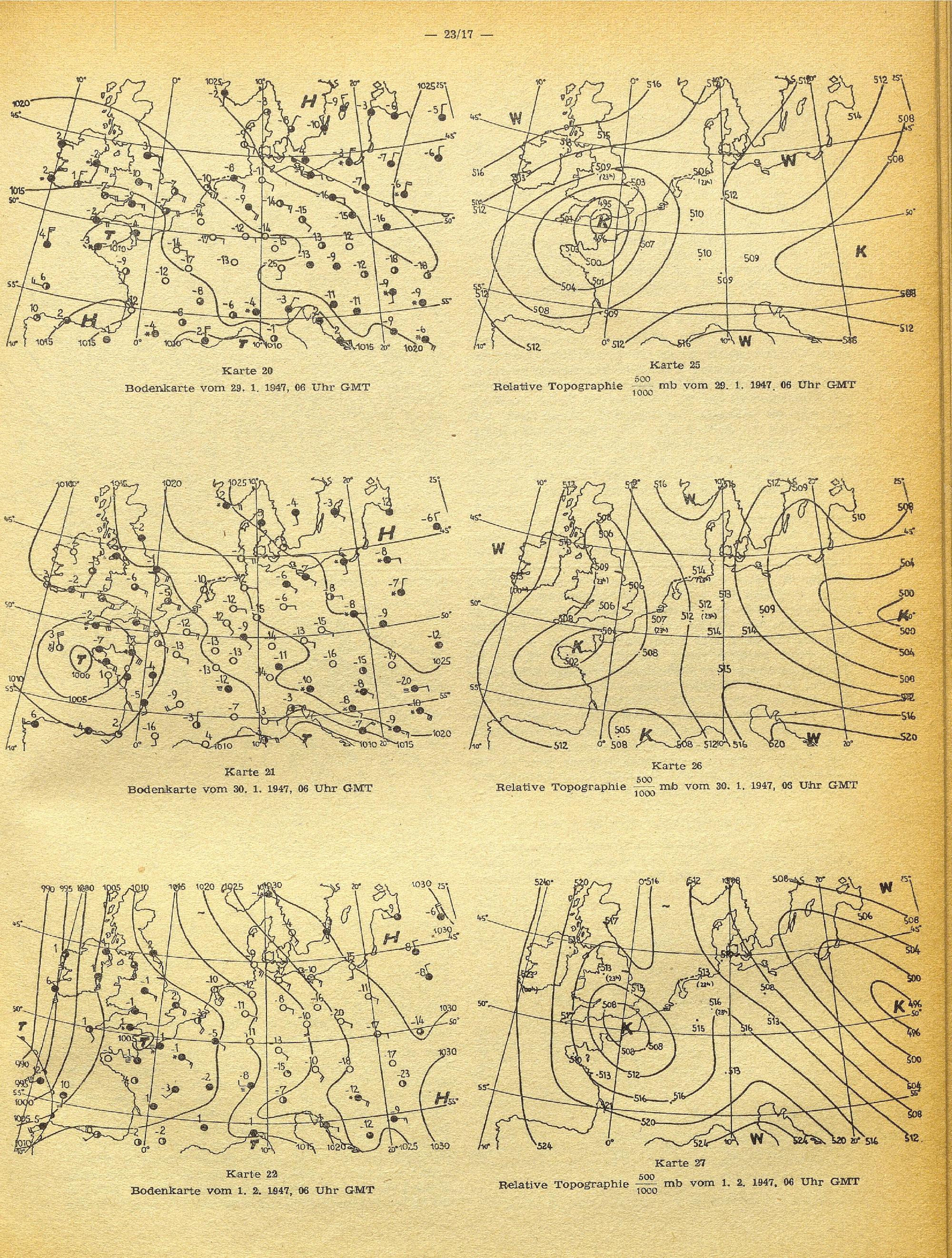 Untersuchungen über Verlagerung, Aufbau und Dynamik zweier winterlicher Kaltlufttropfen : Diagnose der Kaltlufttropfen vom 13. bis 16. Dezember 1946 und vom 27. bis 30. Januar 1947 / von Werner Buschner