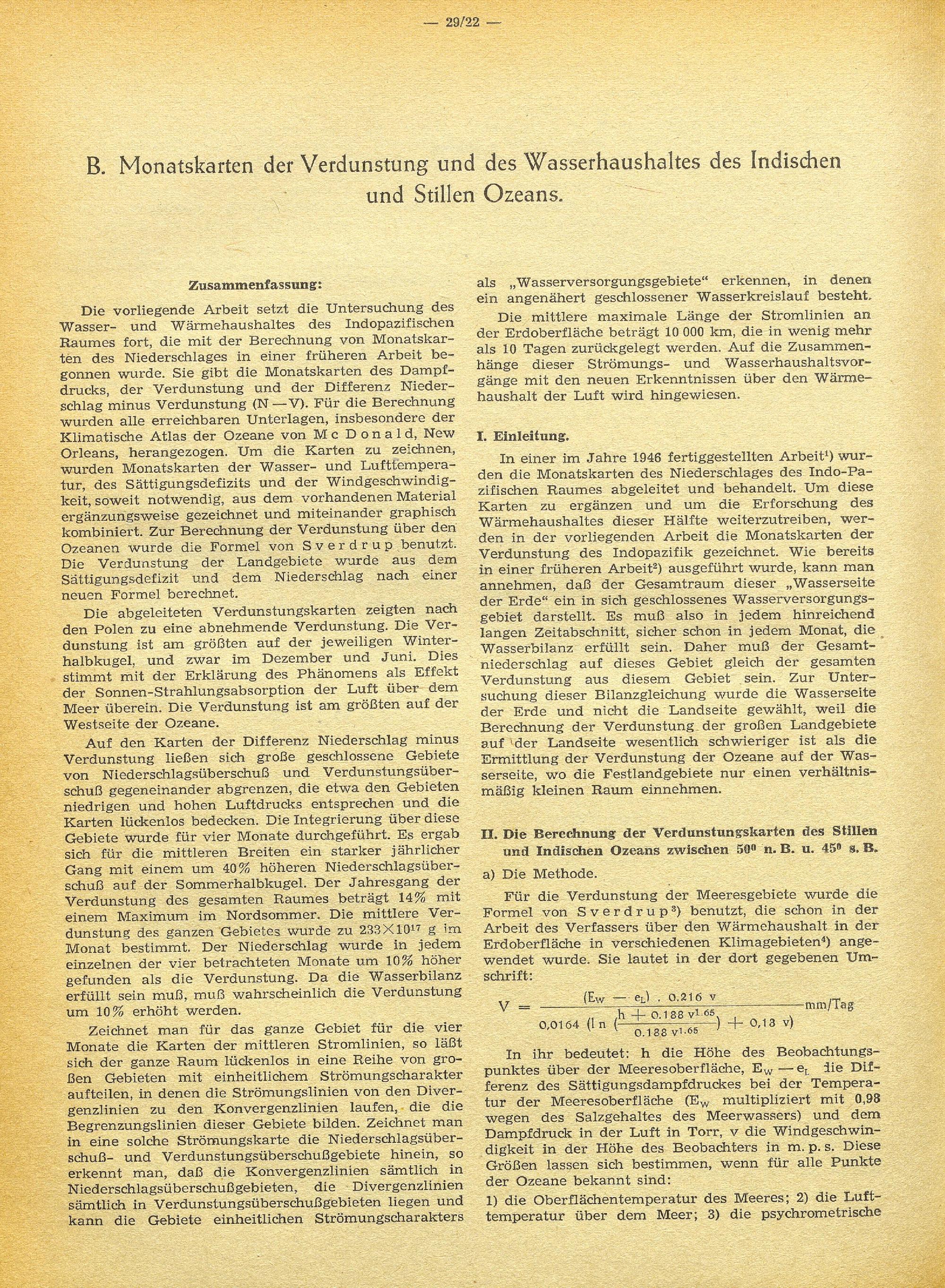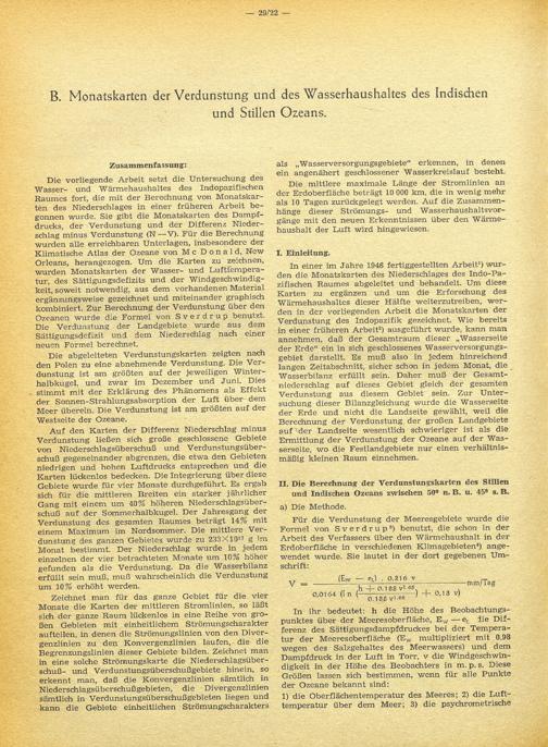 B. Monatskarten der Verdunstung und des Wasserhaushaltes des Indischen und Stillen...