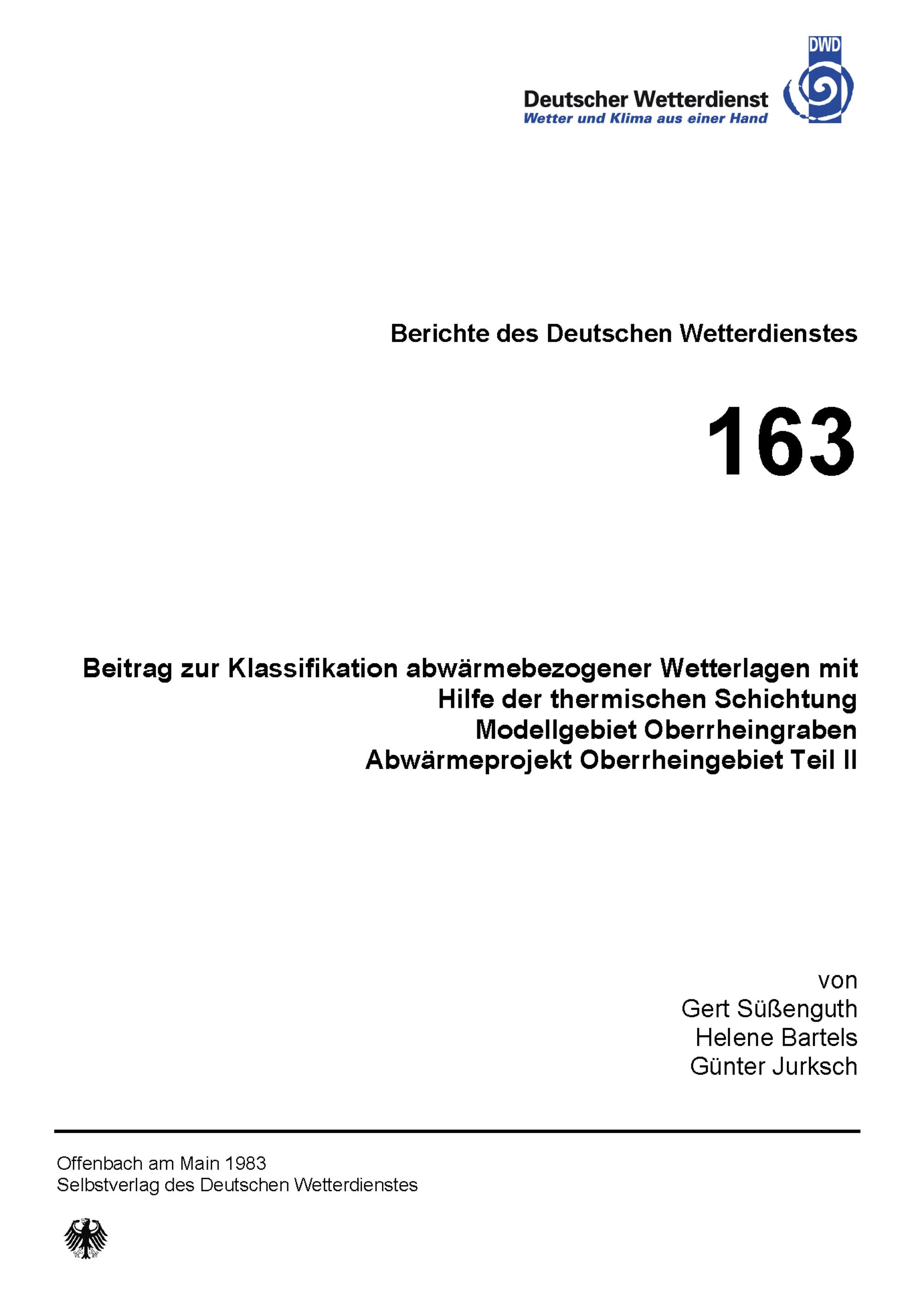 Beitrag zur Klassifikation abwärmebezogener Wetterlagen mit Hilfe der thermischen Schichtung : Modell Oberrheingraben / von Gert Süßenguth, Helene Bartels u. Günter Jurksch
