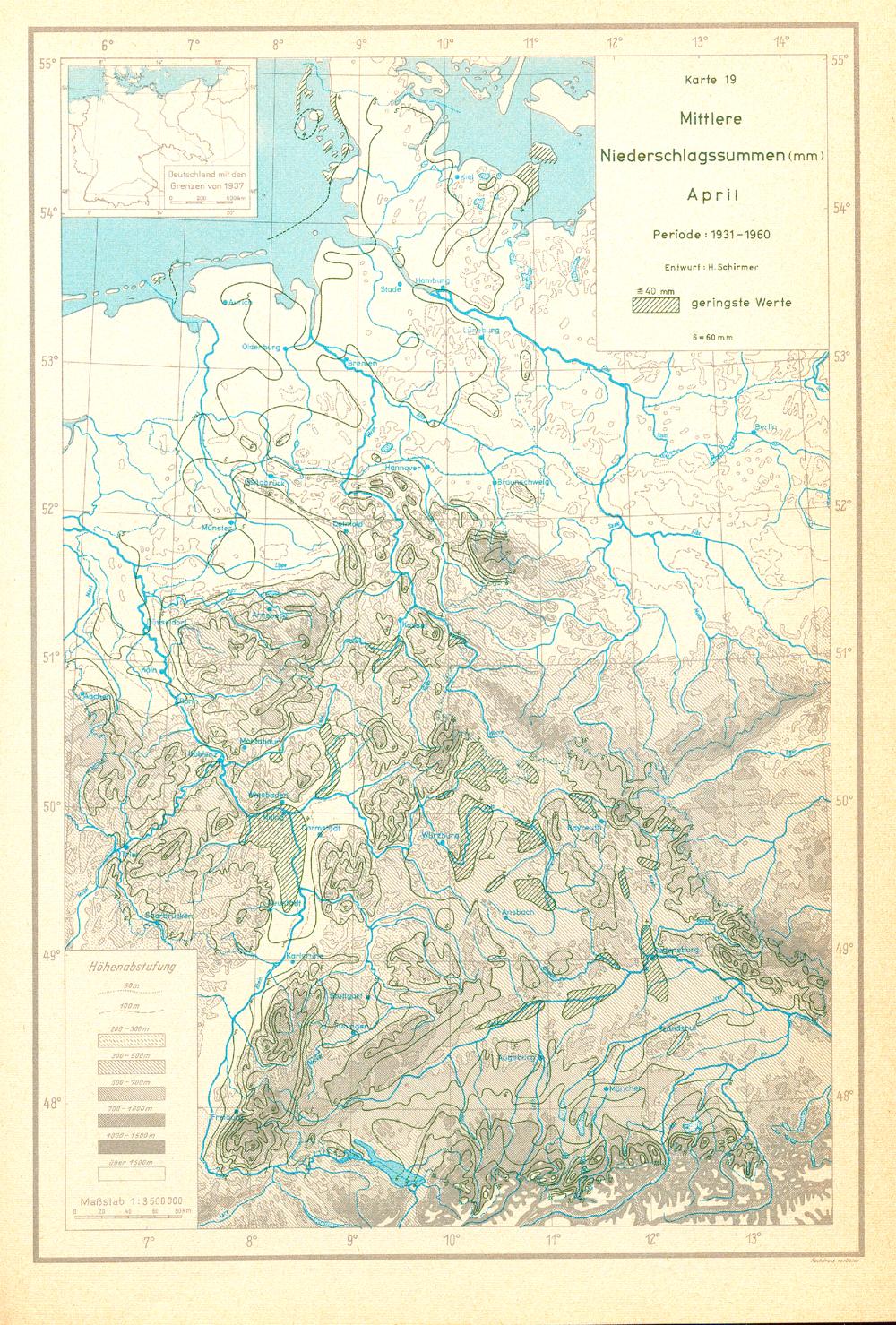 Langjährige Monats- und Jahresmittel der Lufttemperatur und des Niederschlags in der Bundesrepublik Deutschland für die Periode 1931 - 1960 : (mit 3 Tabellen im Anhang) / von Hans Schirmer