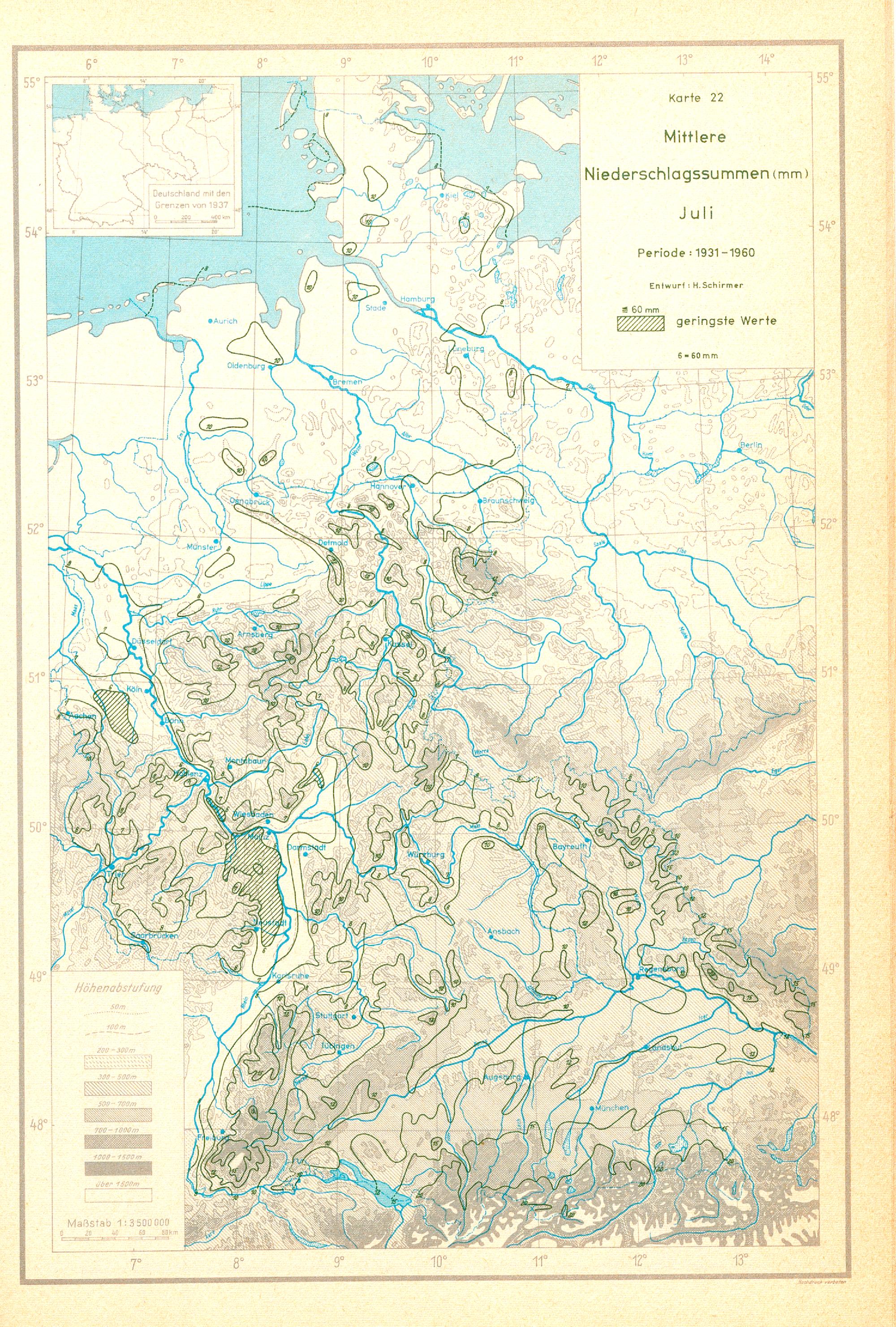 Langjährige Monats- und Jahresmittel der Lufttemperatur und des Niederschlags in der Bundesrepublik Deutschland für die Periode 1931 - 1960 : (mit 3 Tabellen im Anhang) / von Hans Schirmer