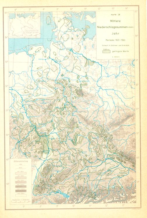 Langjährige Monats- und Jahresmittel der Lufttemperatur und des Niederschlags in der Bundesrepublik Deutschland für die Periode 1931 - 1960 : (mit 3 Tabellen im Anhang) / von Hans Schirmer