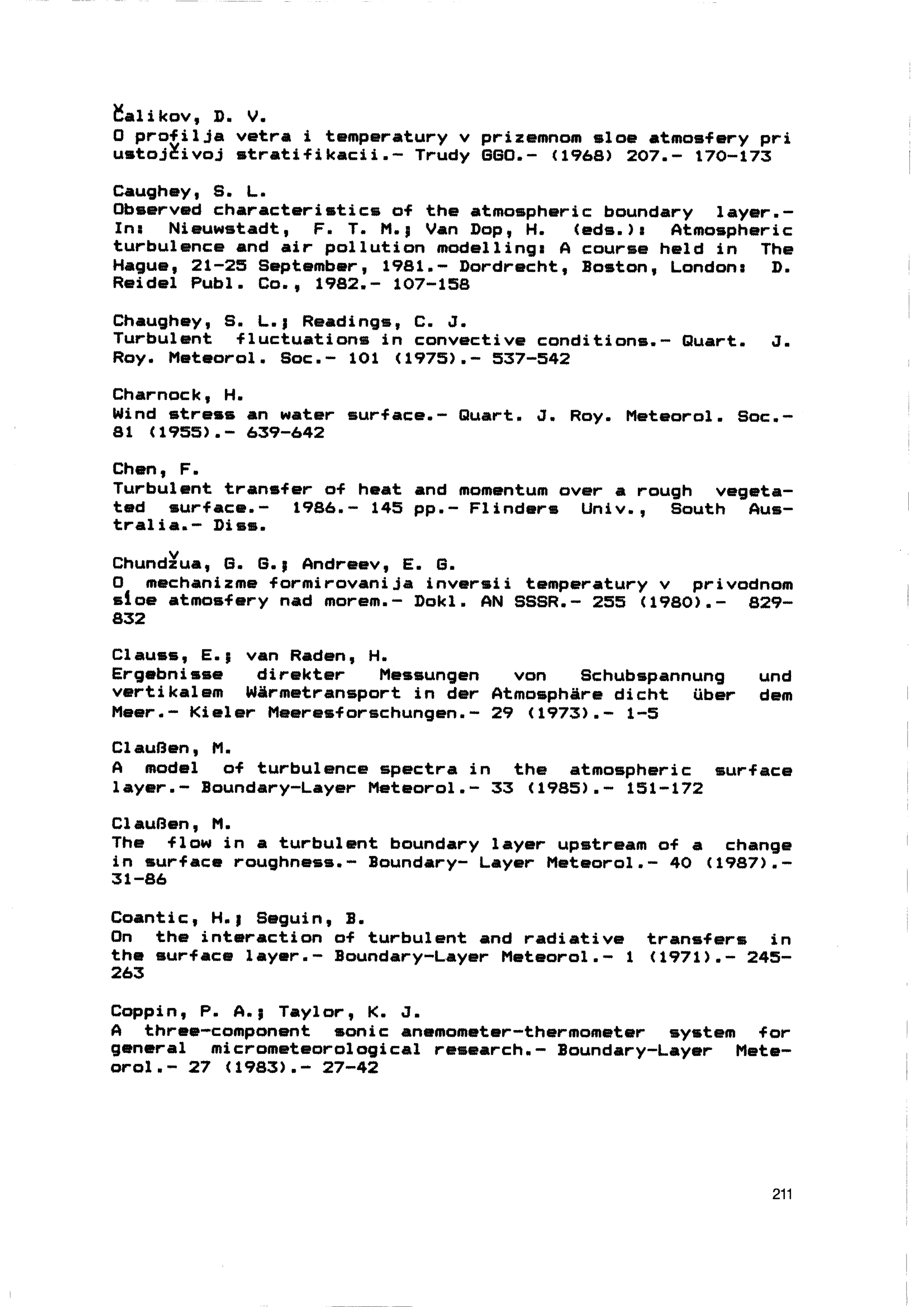 Turbulenter Energieaustausch zwischen Atmosphäre und Unterlage : Methoden, meßtechnische Realisierung sowie ihre Grenzen und Anwendungsmöglichkeiten ; (mit 48 Tabellen im Text sowie 27 Anlagen) / von Thomas Foken