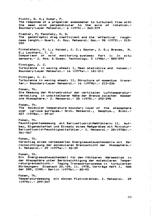 Turbulenter Energieaustausch zwischen Atmosphäre und Unterlage : Methoden, meßtechnische Realisierung sowie ihre Grenzen und Anwendungsmöglichkeiten ; (mit 48 Tabellen im Text sowie 27 Anlagen) / von Thomas Foken