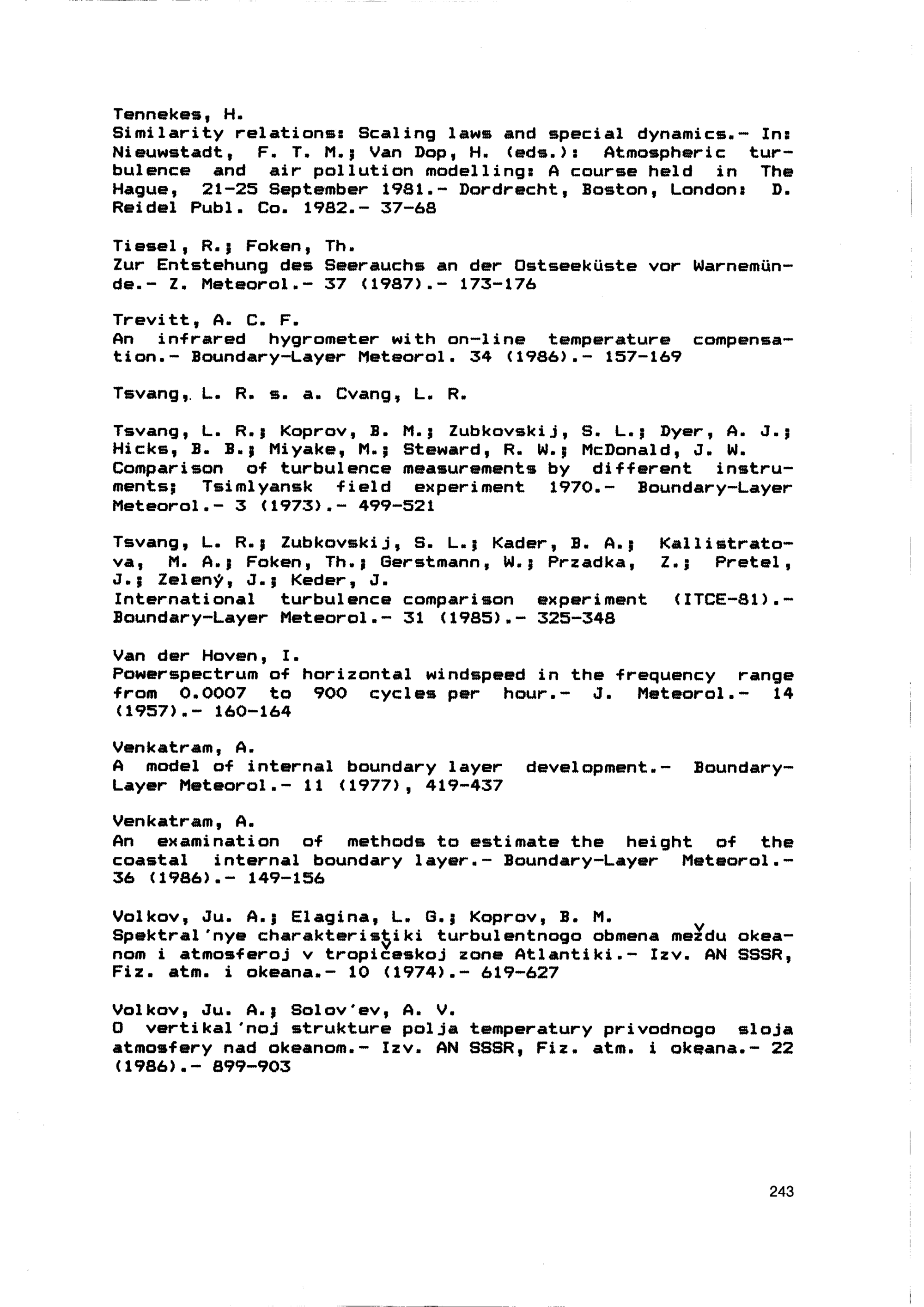 Turbulenter Energieaustausch zwischen Atmosphäre und Unterlage : Methoden, meßtechnische Realisierung sowie ihre Grenzen und Anwendungsmöglichkeiten ; (mit 48 Tabellen im Text sowie 27 Anlagen) / von Thomas Foken