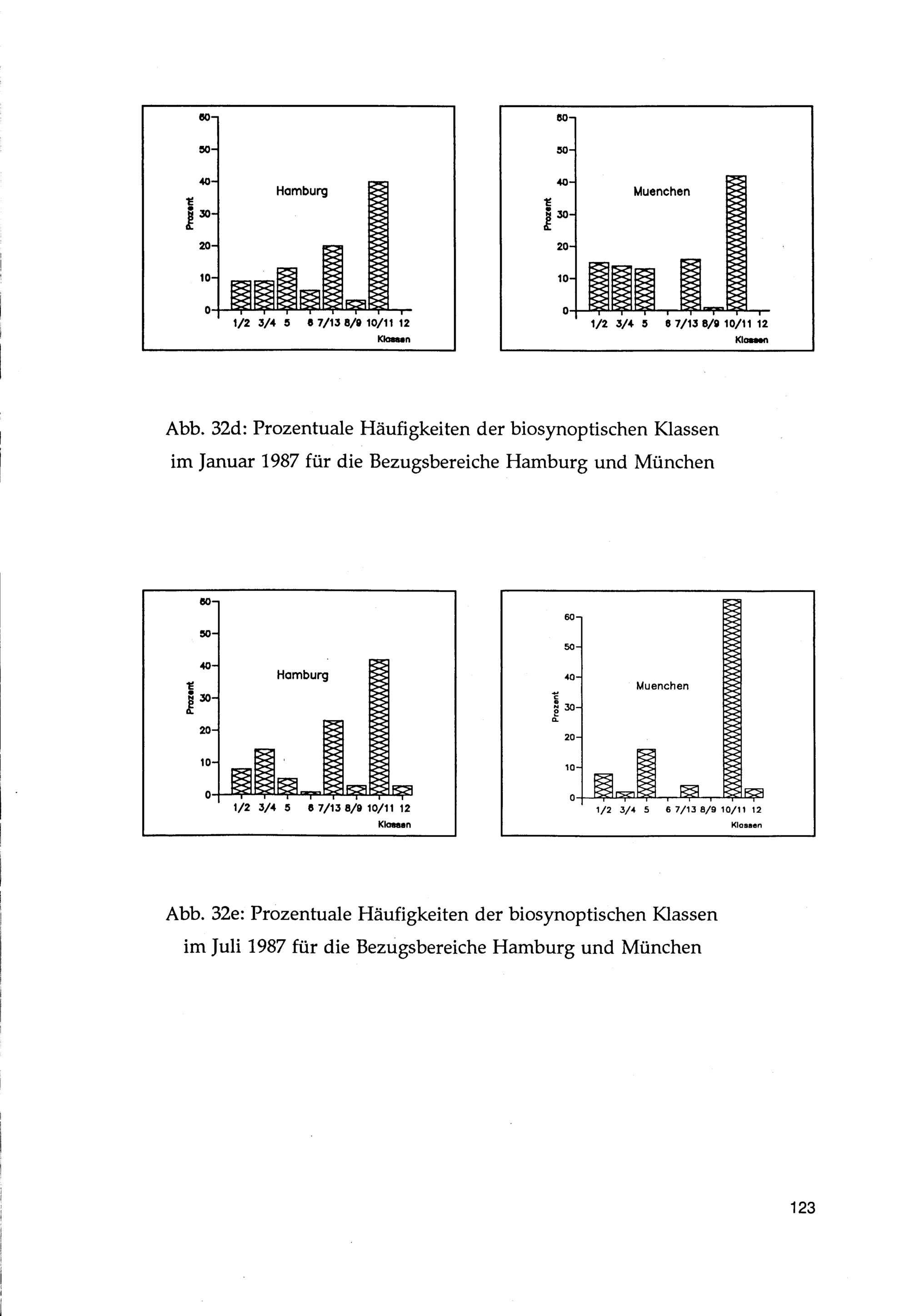 7. Häufigkeitsverteilungen der objektiven biosynoptischen Klassen für verschiedene Zeiträume und Bezugspunkte