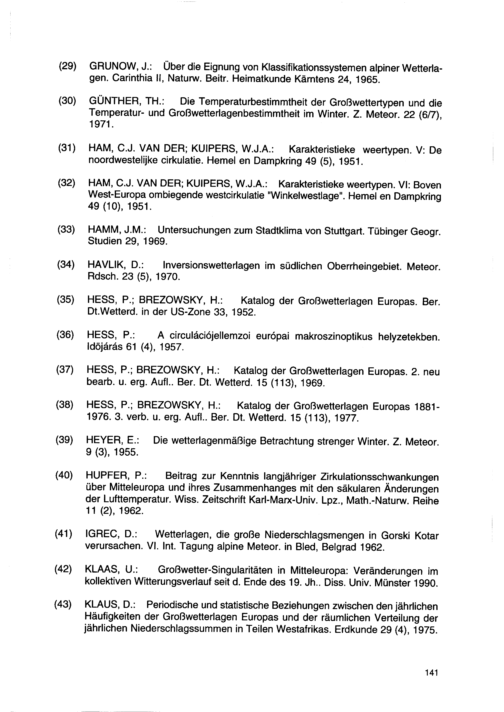 Katalog der Großwetterlagen Europas nach Paul Hess und Helmuth Brezowski 1881 - ...