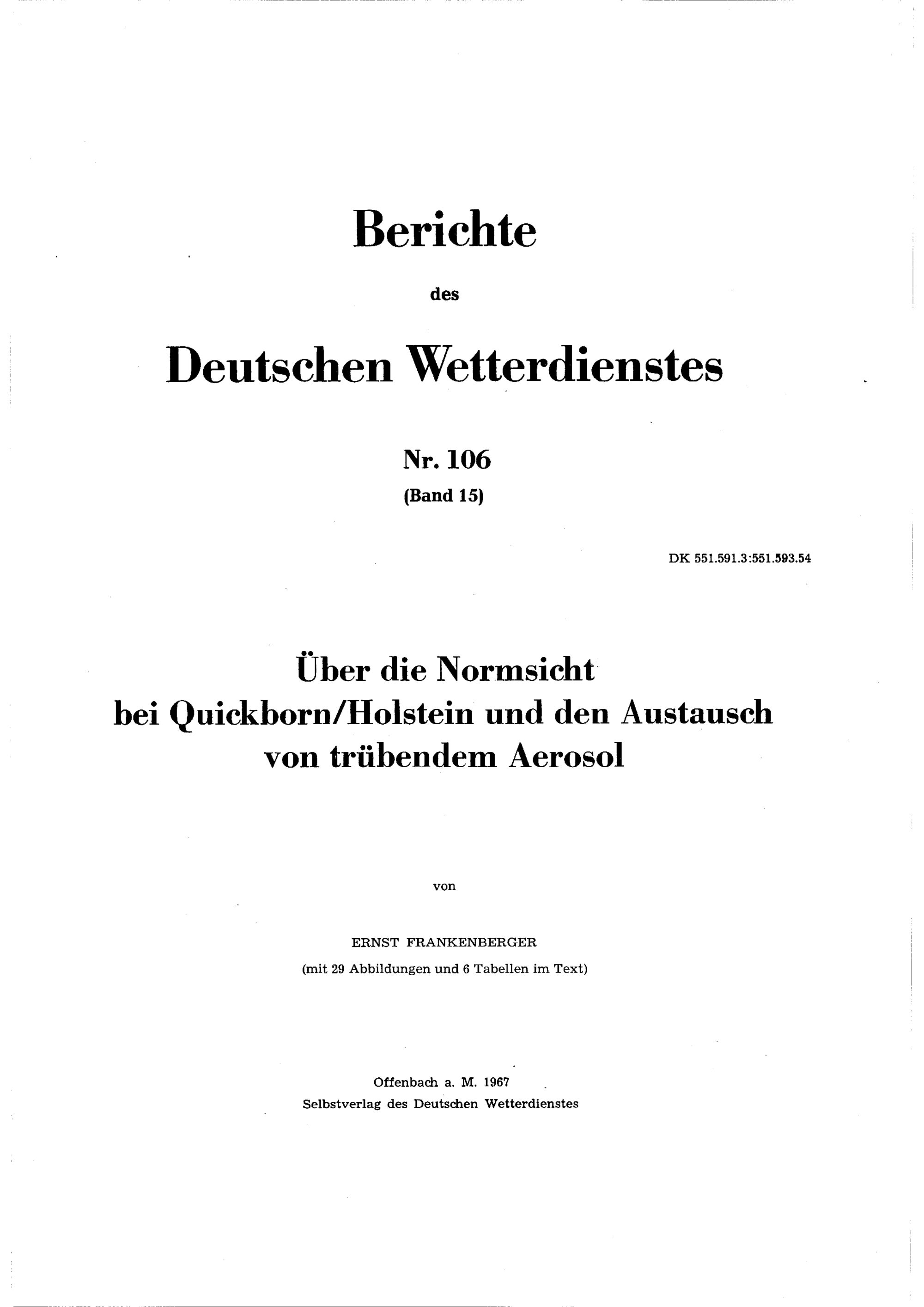 Über die Normsicht bei Quickborn/Holstein und den Austausch von trübendem Aerosol : (mit 6 Tabellen im Text) / von Ernst Frankenberger