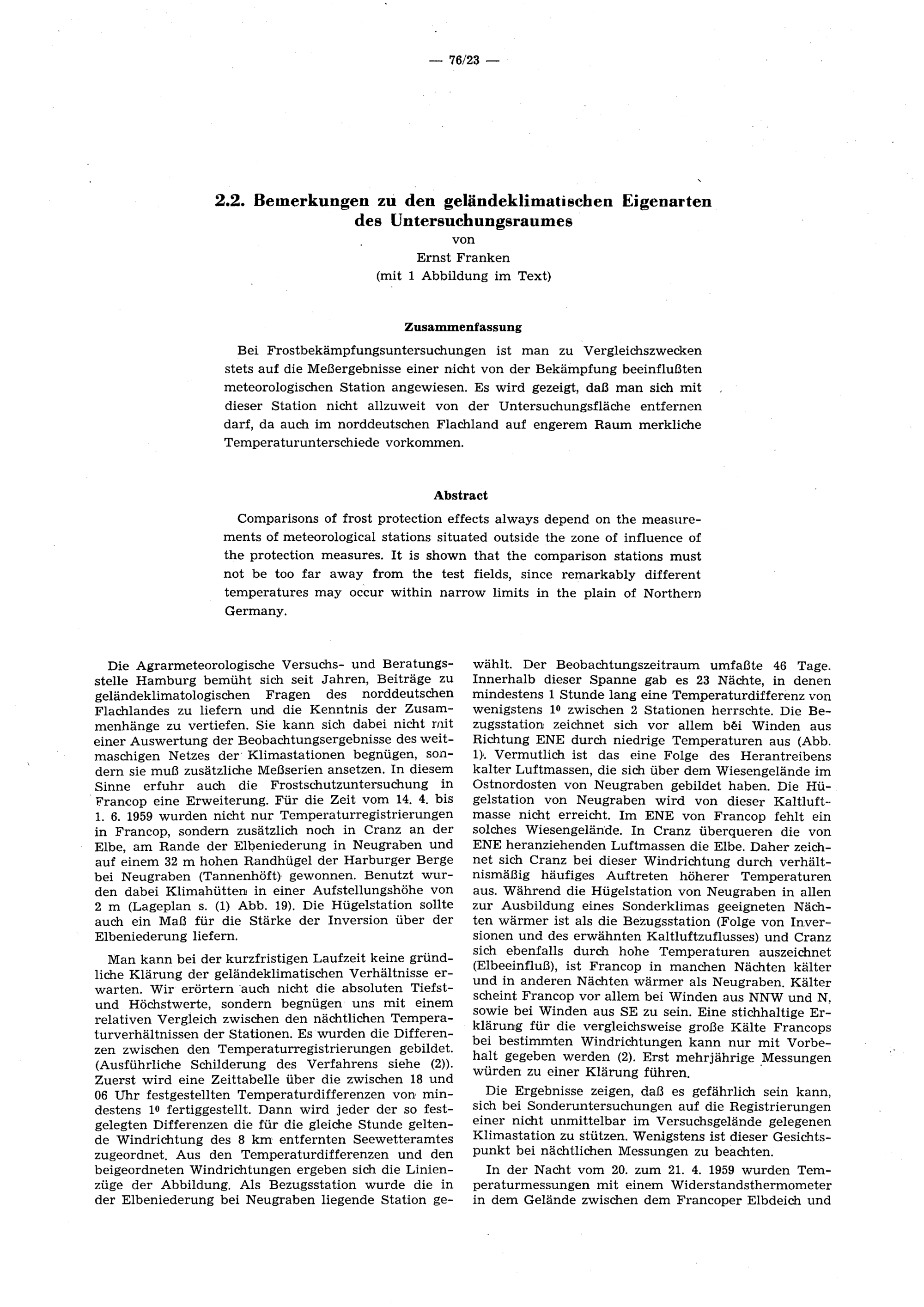 2. Frostbekämpfungsversuche 1959 im Obstbau des Alten Landes bei Hamburg