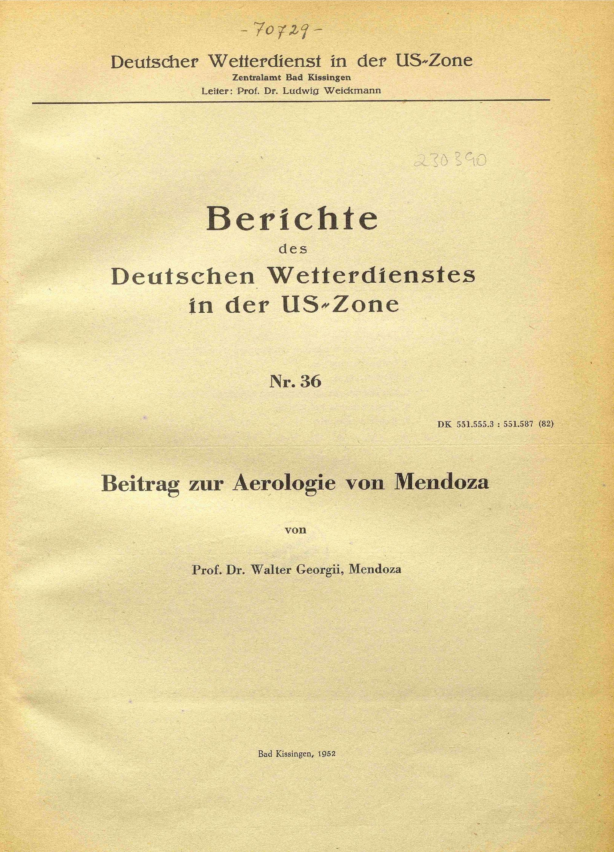 Beitrag zur Aerologie von Mendoza / von Walter Georgii