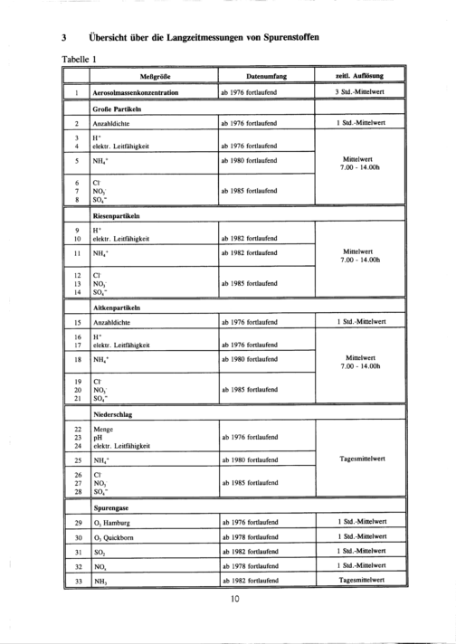 3. Übersicht über die Langzeitmessungen von Spurenstoffen