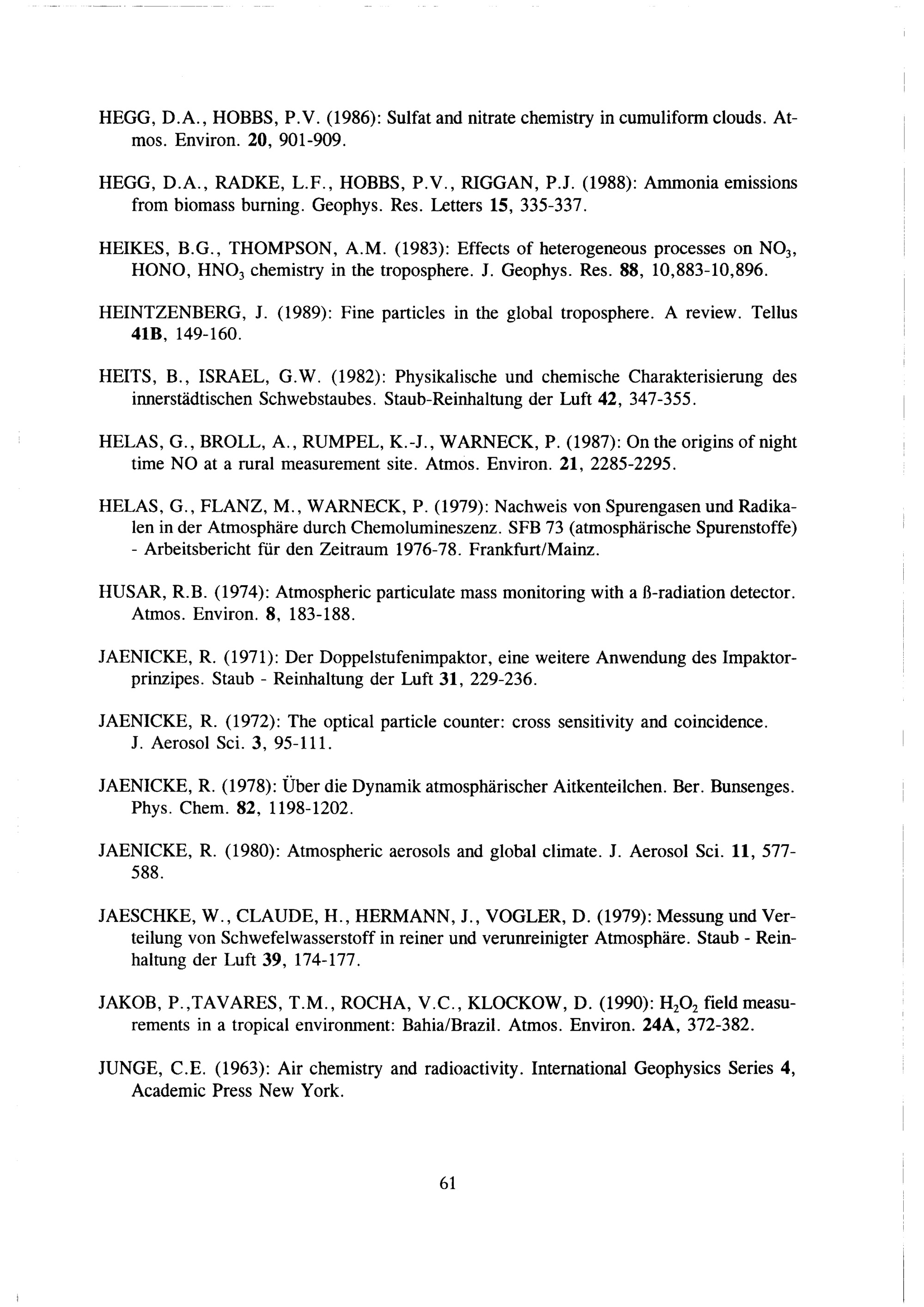 Die luftchemischen Meßreihen des Meteorologischen Observatoriums Hamburg / von Uwe Kaminski und Peter Winkler