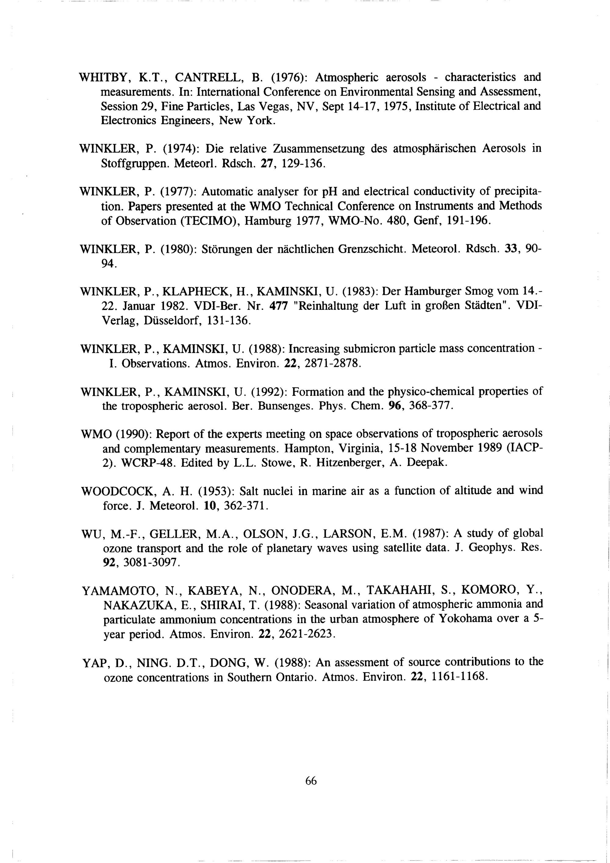 Die luftchemischen Meßreihen des Meteorologischen Observatoriums Hamburg / von Uwe Kaminski und Peter Winkler