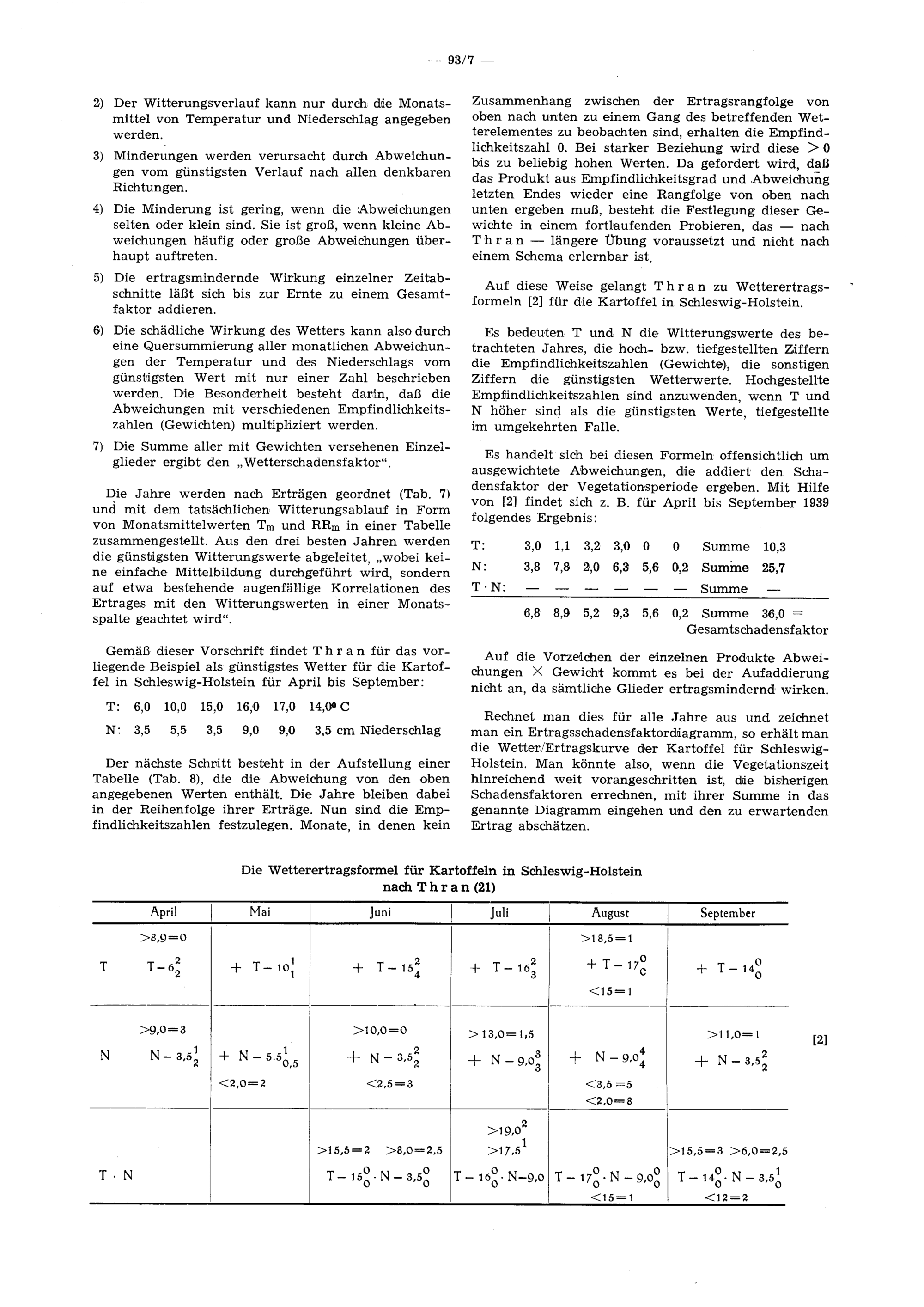2. Der Zusammenhang zwischen Witterung und Ertrag der Spätkartoffel