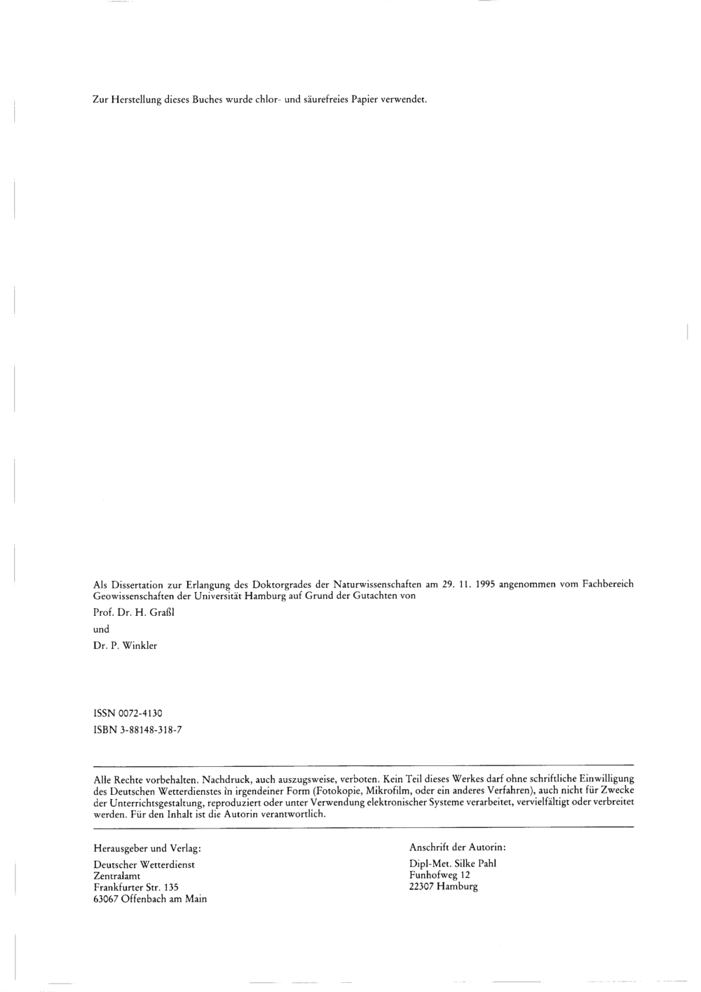 Feuchte Deposition auf Nadelwälder in den Hochlagen der Mittelgebirge / von Silke Pahl