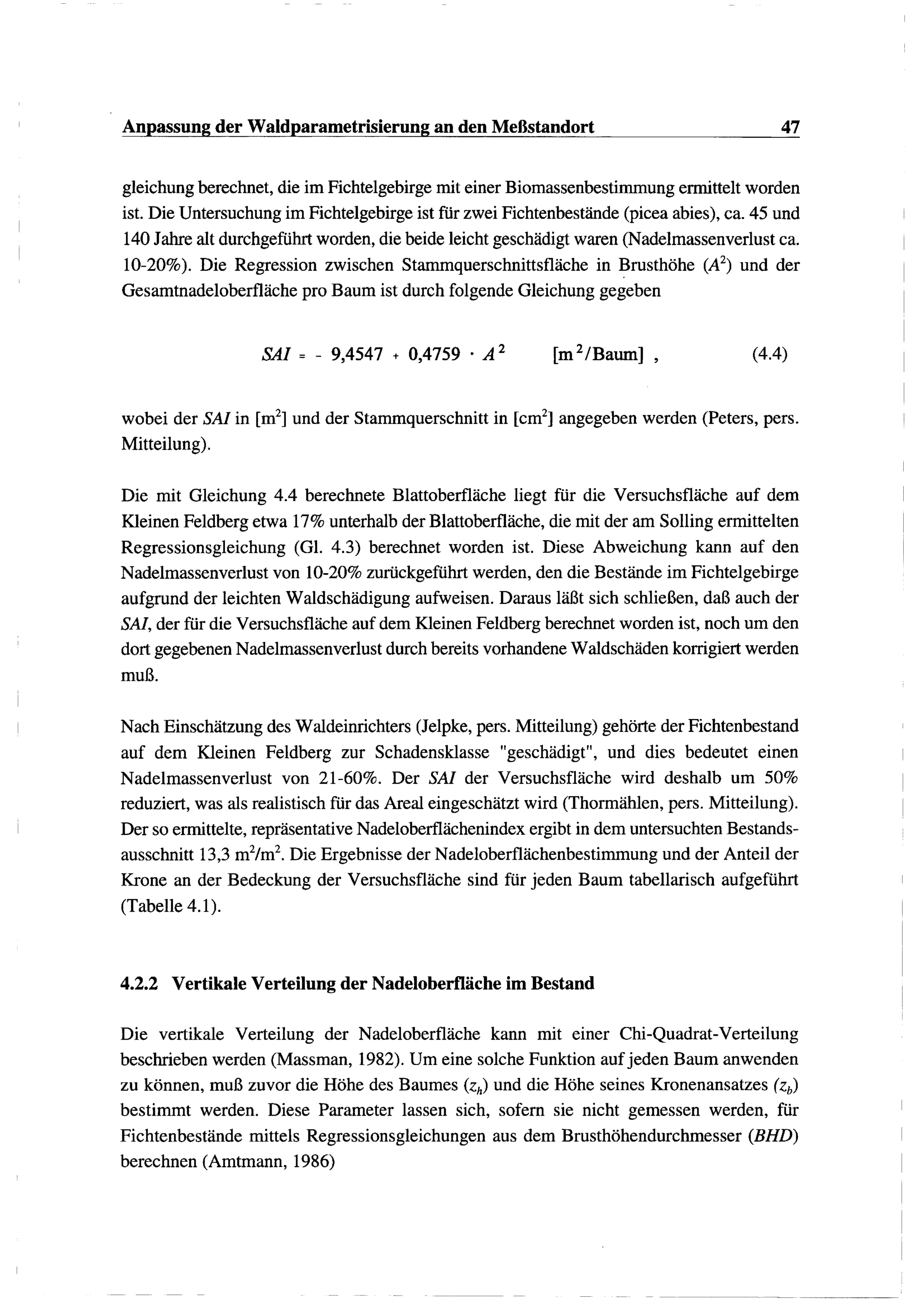 4.2.2. Vertikale Verteilung der Nadeloberfläche im Bestand