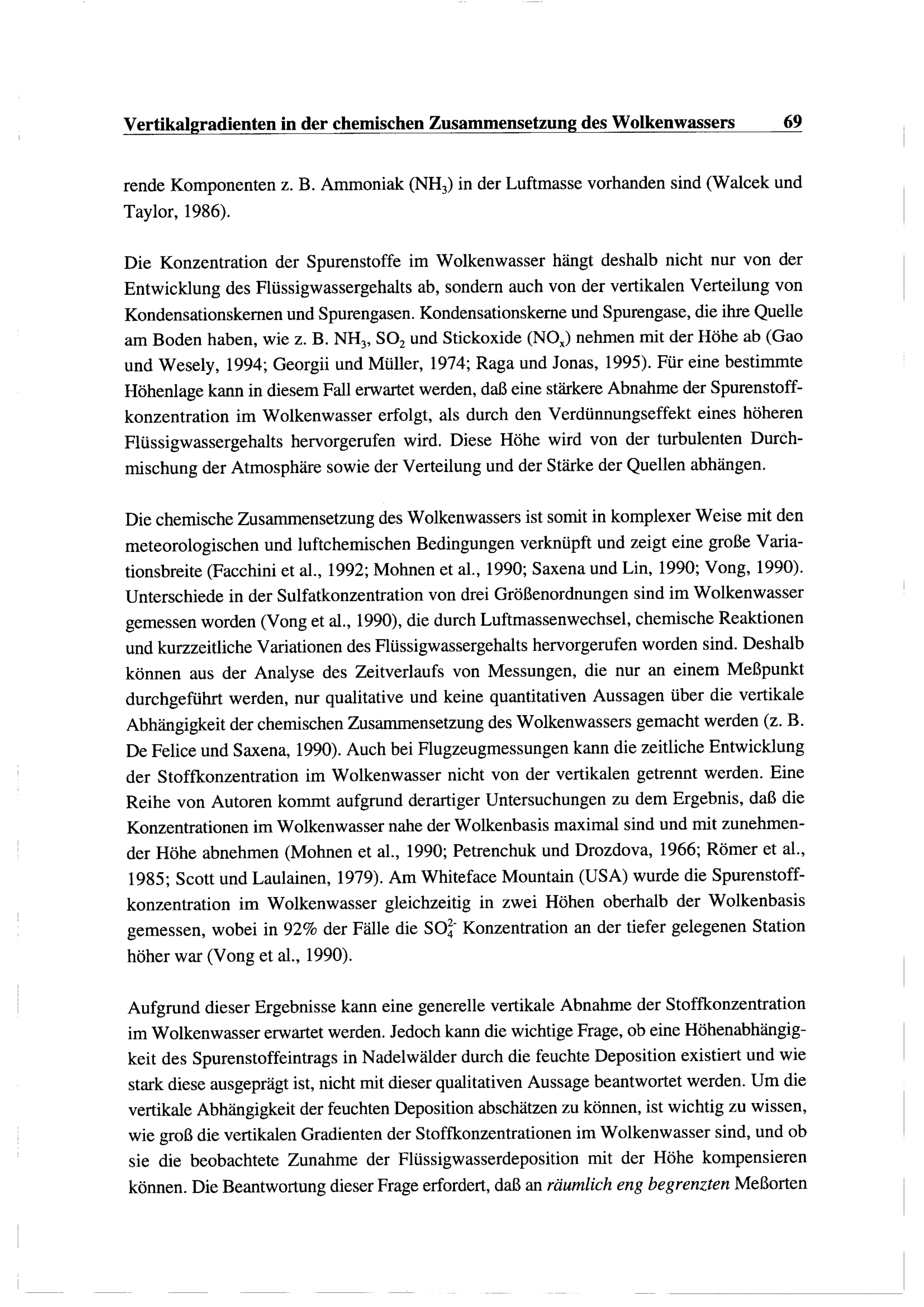6. Vertikalgradienten in der chemischen Zusammensetzung des Wolkenwassers