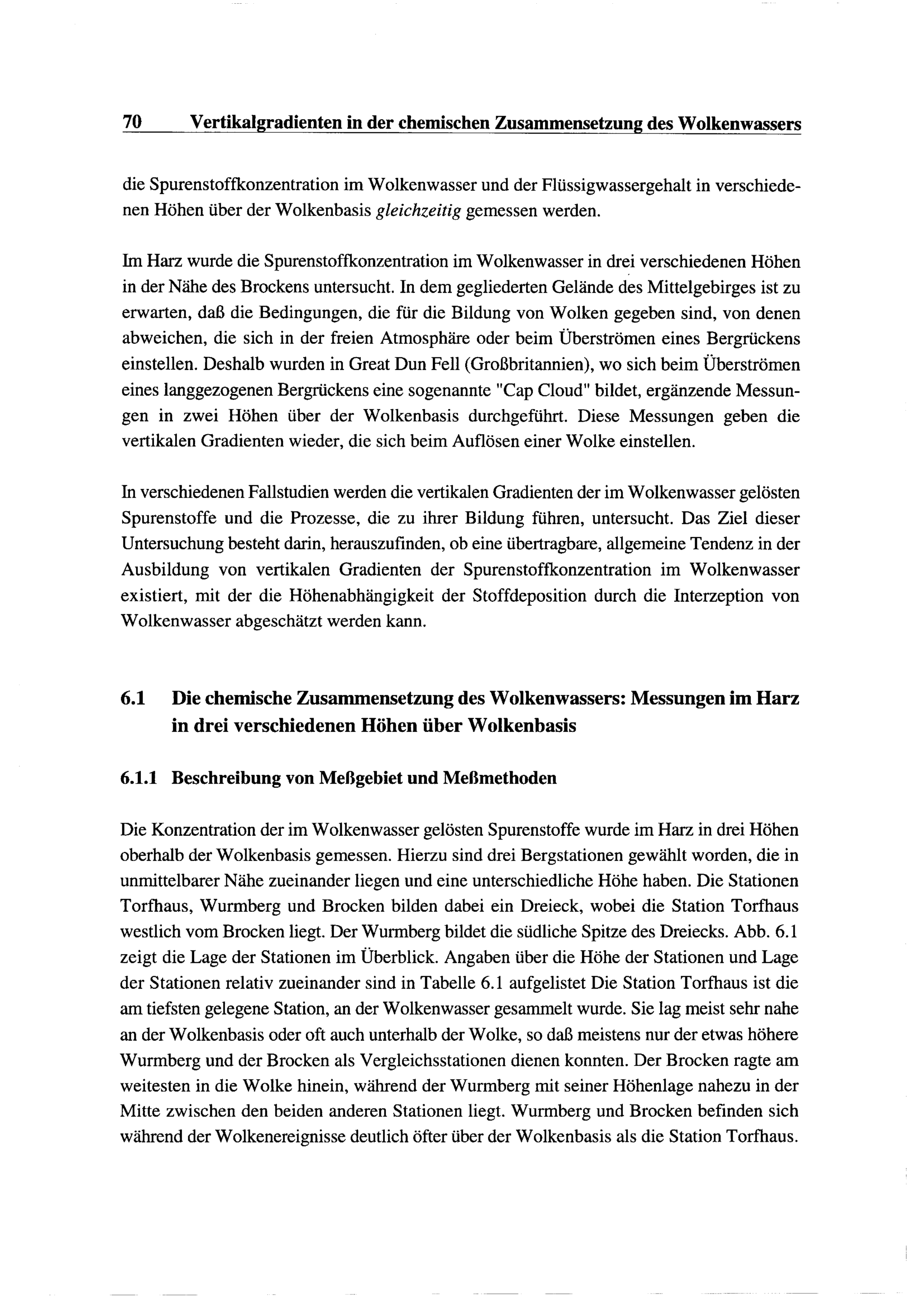 6.1. Die chemische Zusammensetzung des Wolkenwassers: Messungen im Harz in drei verschiedenen...