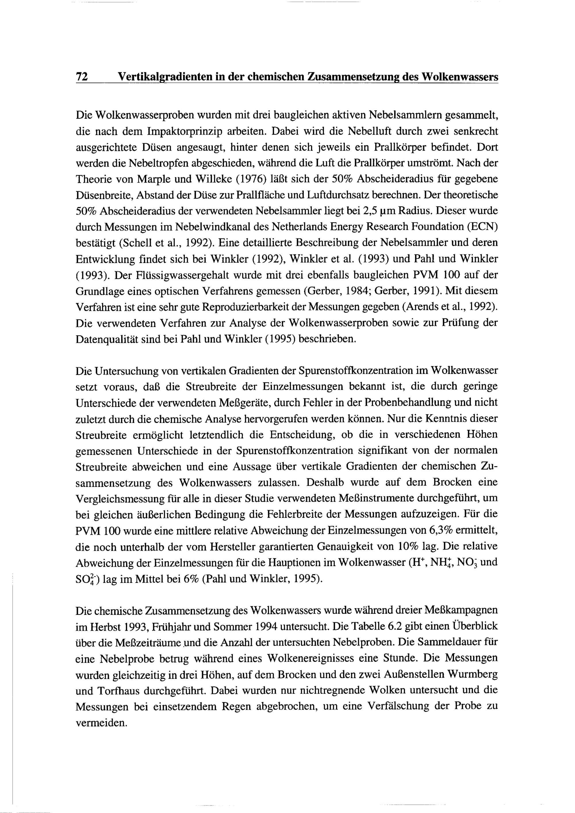 6.1. Die chemische Zusammensetzung des Wolkenwassers: Messungen im Harz in drei verschiedenen...