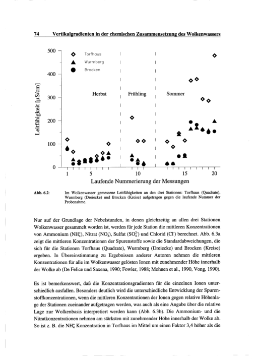 6.1. Die chemische Zusammensetzung des Wolkenwassers: Messungen im Harz in drei verschiedenen...