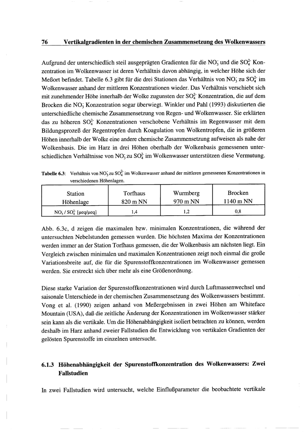 6.1. Die chemische Zusammensetzung des Wolkenwassers: Messungen im Harz in drei verschiedenen...
